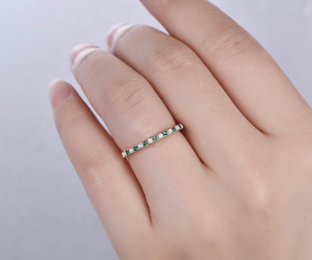 Opal ring for women emerald wedding ring band half eternity rose gold art deco opal wedding band May birthstone ring promise ring band gift