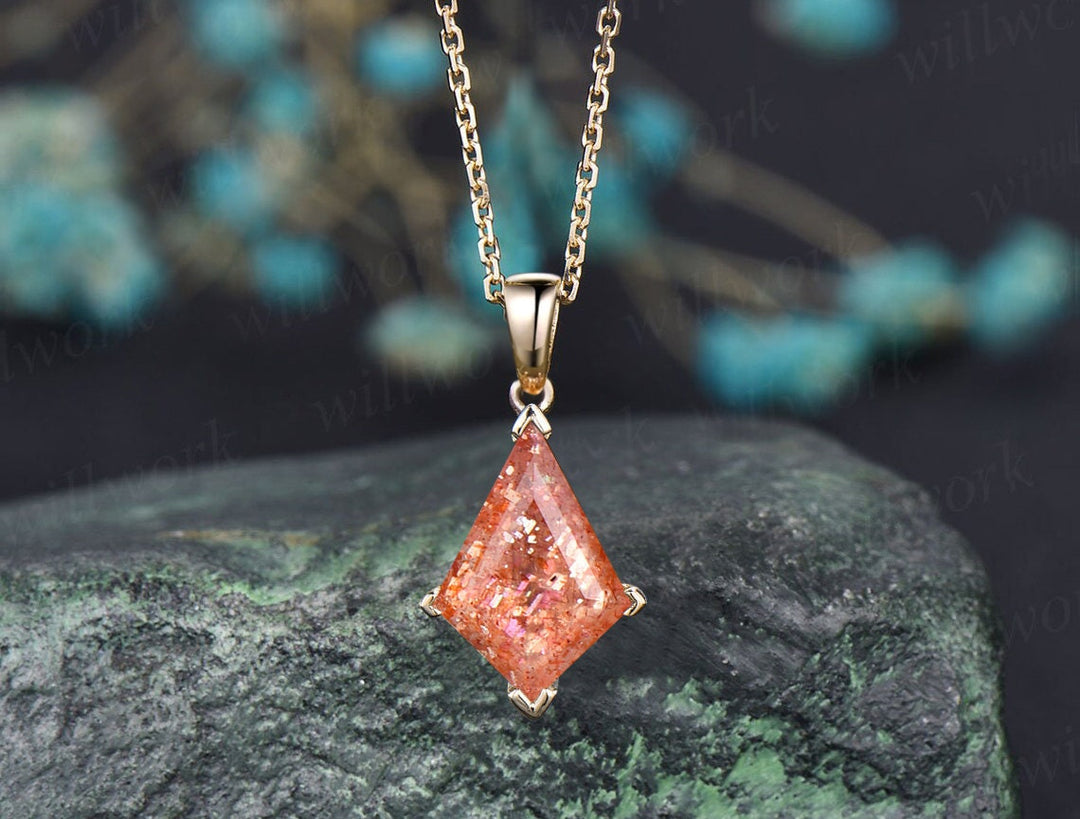 Kite cut Sunstone necklace solid 14k 18k yellow gold vintage unique Personalized pendant women her gemstone anniversary bridal gift mother
