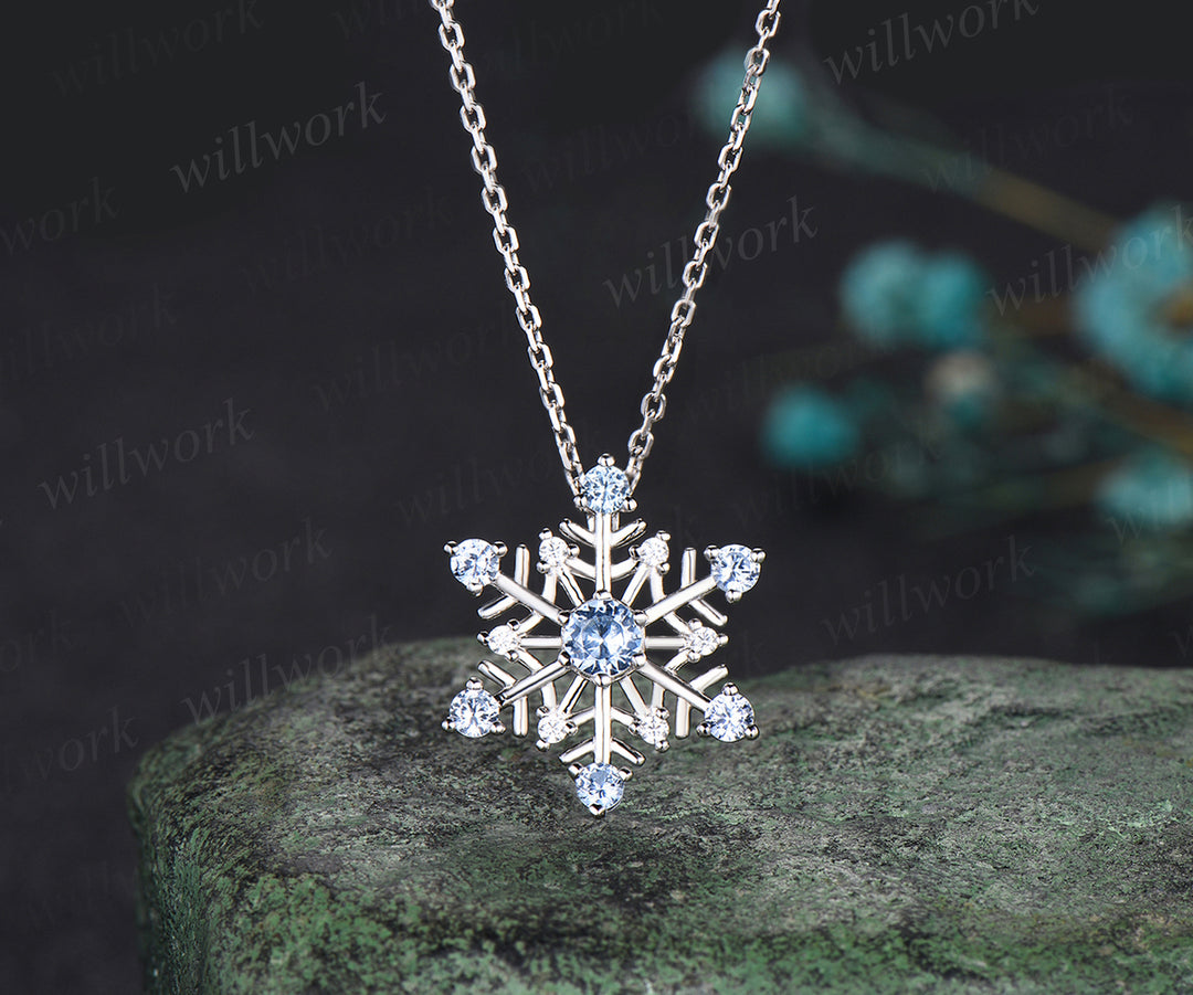 Christmas Snowflake Necklace Earrings Set Christmas Atmosphere Jewelry with a snow blue topaz Christmas Eve Jewelry Gifts for her