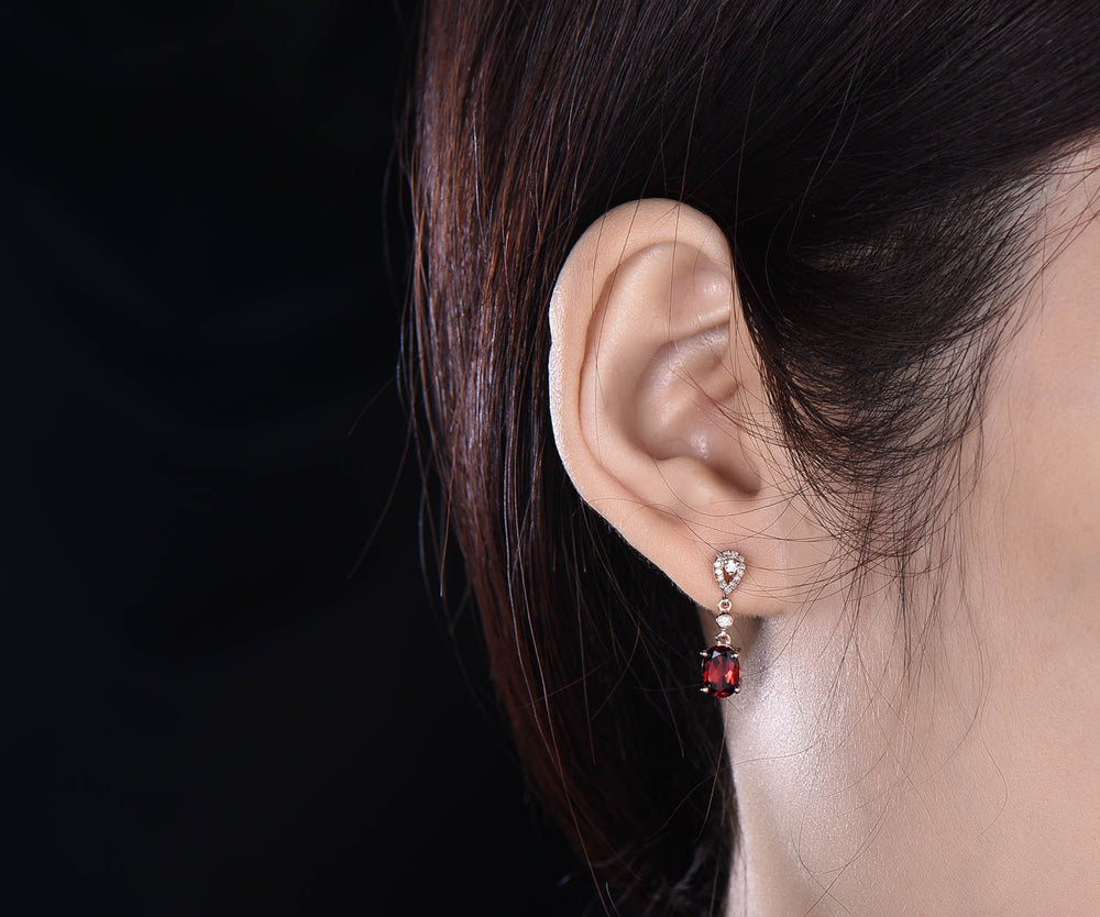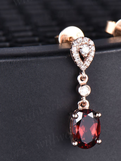 Vintaeg 1ct oval ganet earrings solid 14k rose gold ring real diamond Earrings women garnet jewelry gift her January birthstone earrings