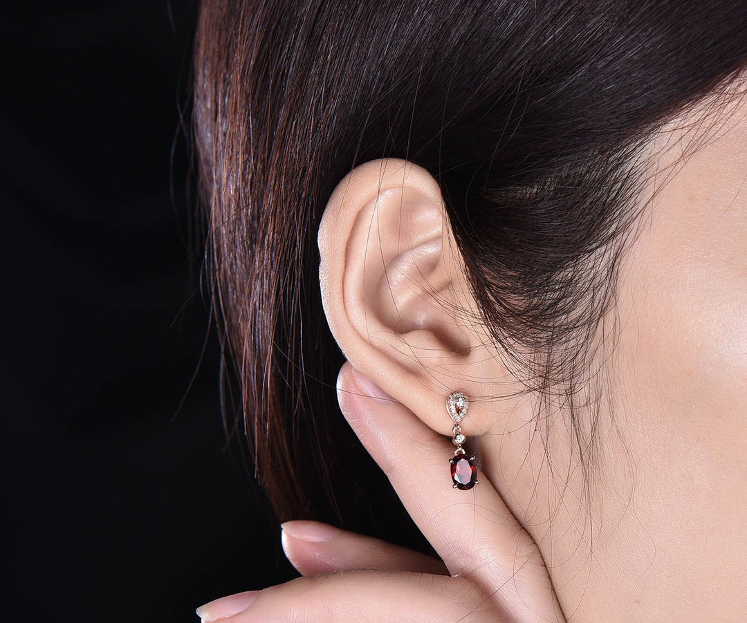 Vintage 1ct oval ganet earrings solid 14k rose gold ring real diamond Earrings women garnet jewelry gift her January birthstone earrings