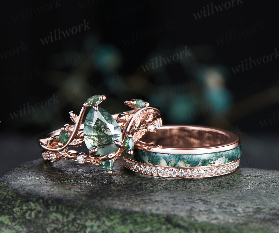 WillWork Jewelry Moss agate rings come in a variety of styles, including:
