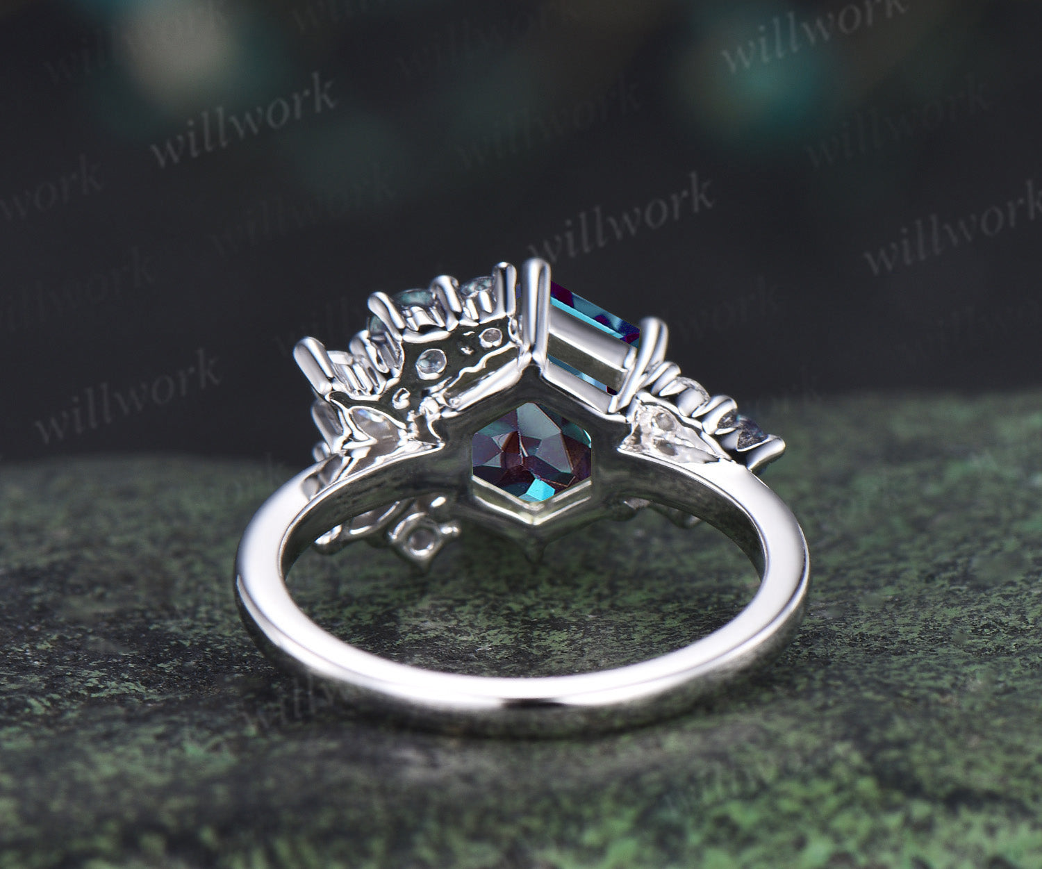 Unique hexagon cut alexandrite ring moissanite alexandrite cluster engagement ring color change gemstone jewelry gifts