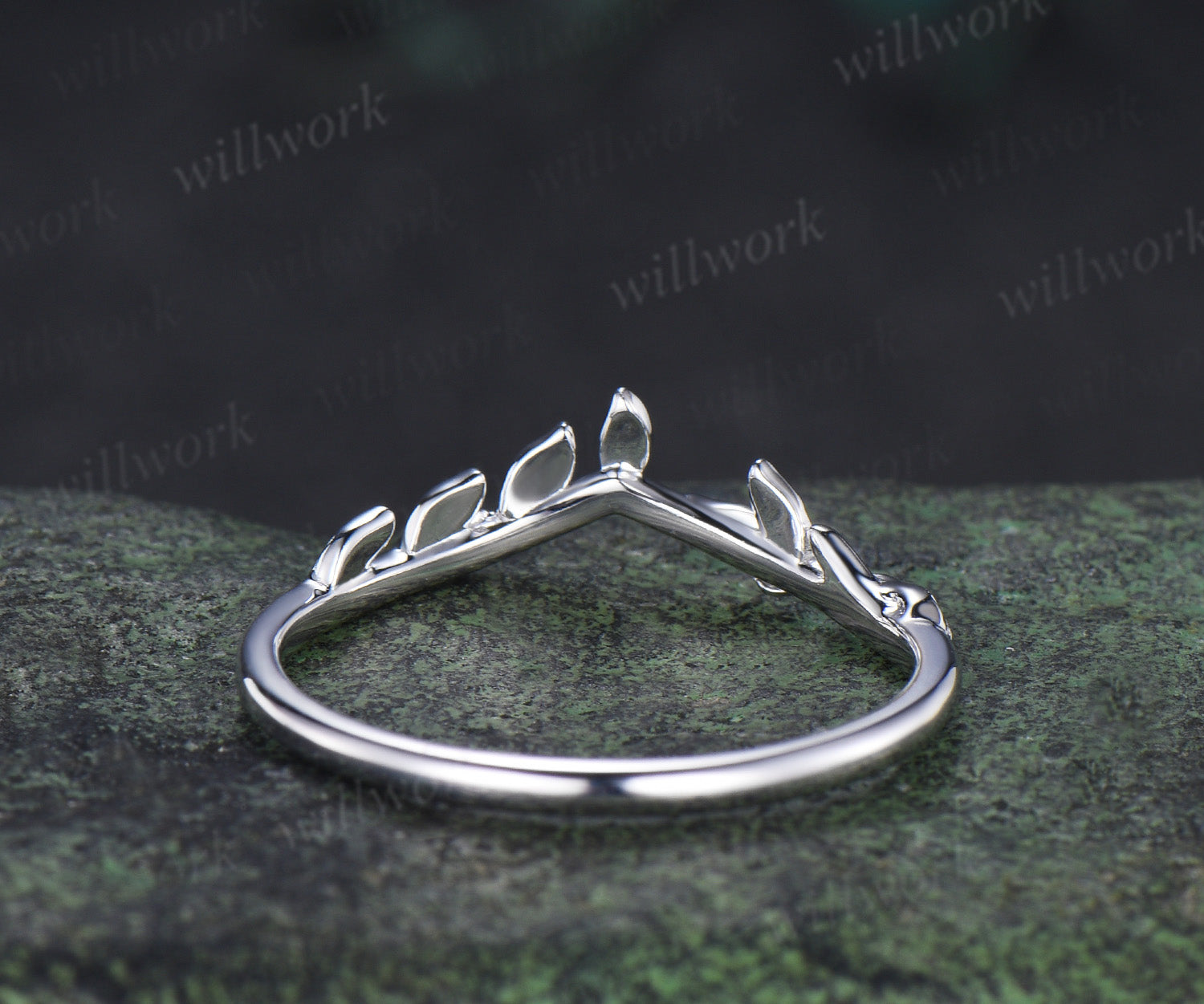 ***Graceful and organic, this curved leaf wedding band captures the elegance of nature with its flowing vine design. Perfect as a matching band or a standalone stacking ring, it adds a soft botanical charm to any jewelry collection—an enchanting, nature-inspired gift for women who love delicate beauty.***- Metal: Solid gold(10K/14K/18K white/yellow/rose gold),925 sterling silver,platinum available