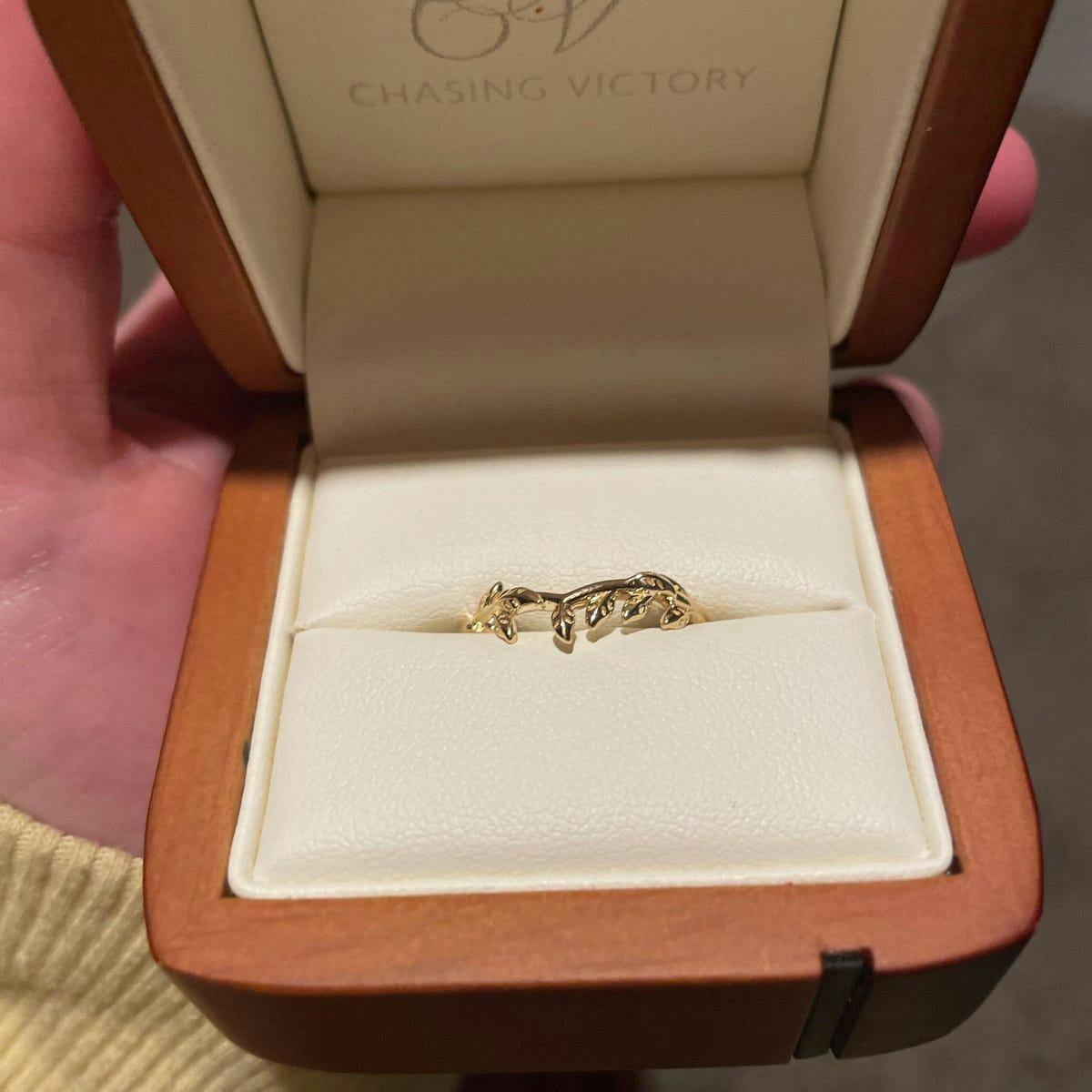 Curved Solitaire leaf wedding band solid 14k yellow gold nature inspired matching stacking wedding ring band women