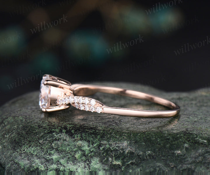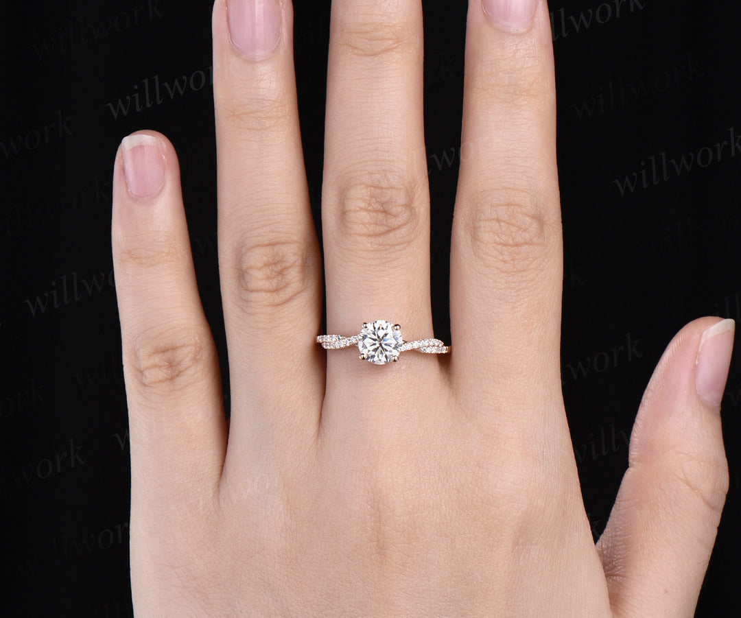 7mm round cut IGI lab-grown diamond engagement ring twisted half eternity diamond-accented proposal ring anniversary gifts for women