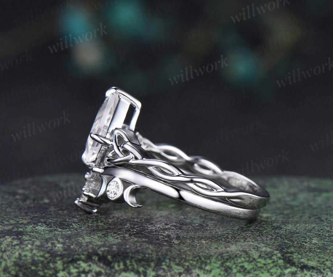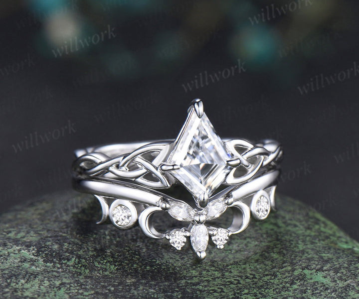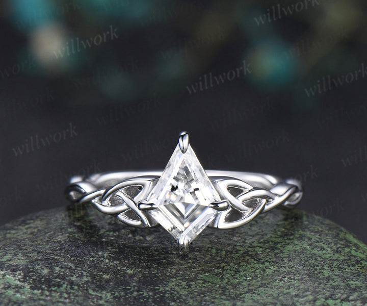 Kite cut IGI lab grown diamond engagement ring set solid 14k white gold Celtic knot infinity solitaire promise ring women