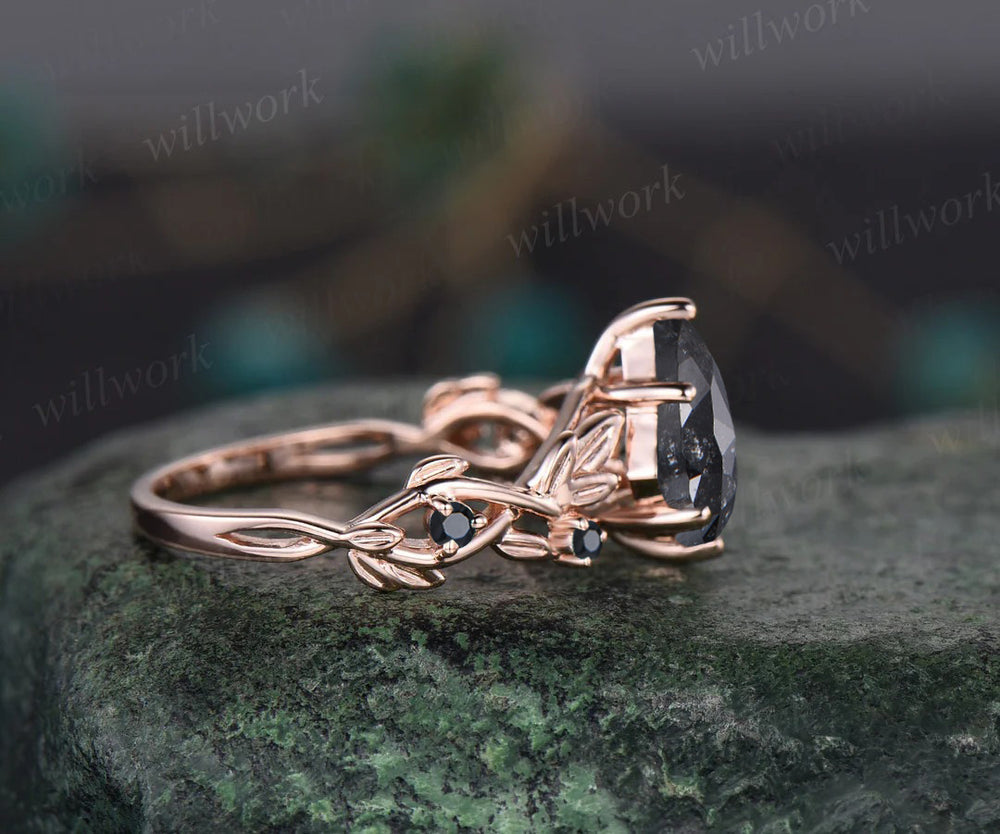 Leaf Kite Salt and Pepper Diamond Engagement Ring Nature Inspired Twig Black Diamond Accented Wedding Ring Leaf Kite Salt and Pepper Diamond Engagement Ring Nature Inspired Twig Black Diamond Accented Wedding Ring $2,871.00