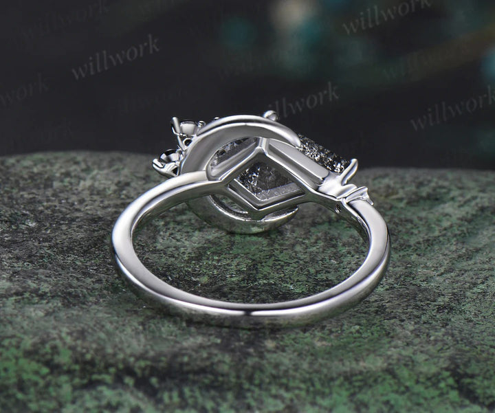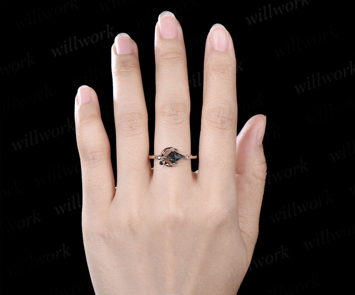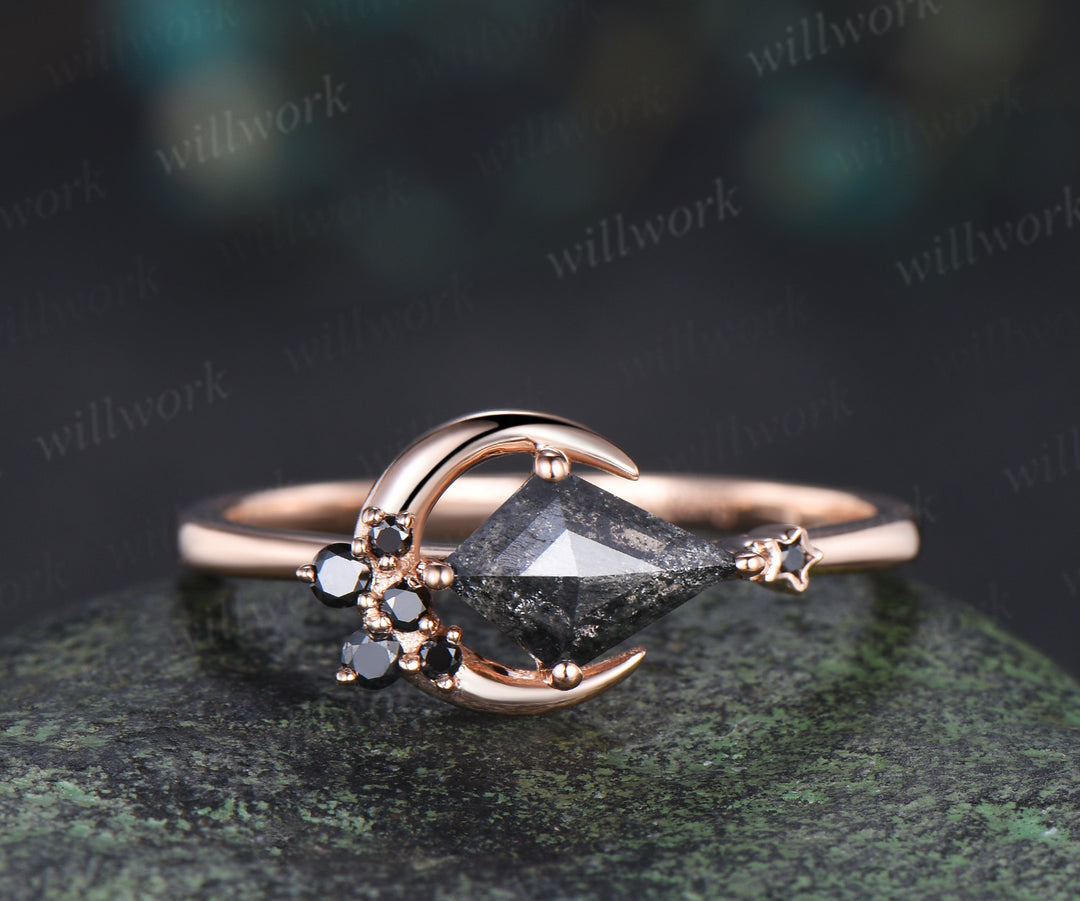 ***Celebrate your love with this enchanting Moon kite-cut salt and pepper diamond engagement ring. Set East to West for a modern twist, the striking kite-shaped diamond captures a celestial charm, while black diamond accents add depth and mystery. A perfect blend of bold elegance and cosmic inspiration?aideal for engagements, weddings, or meaningful anniversaries. A truly unique gift for the one who orbits your heart.***- Metal: Solid gold(10K/14K/18K white/yellow/rose gold), platinum available