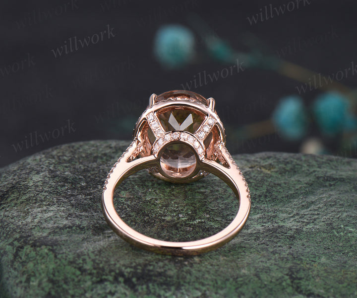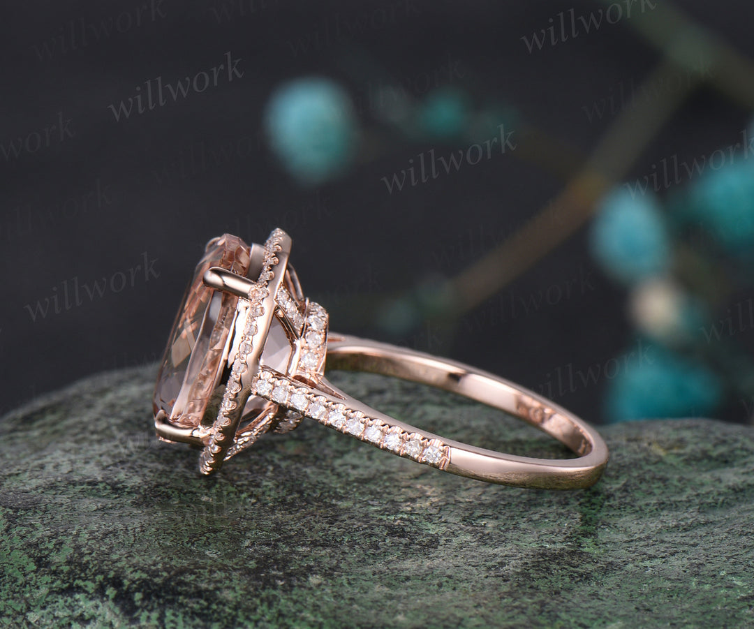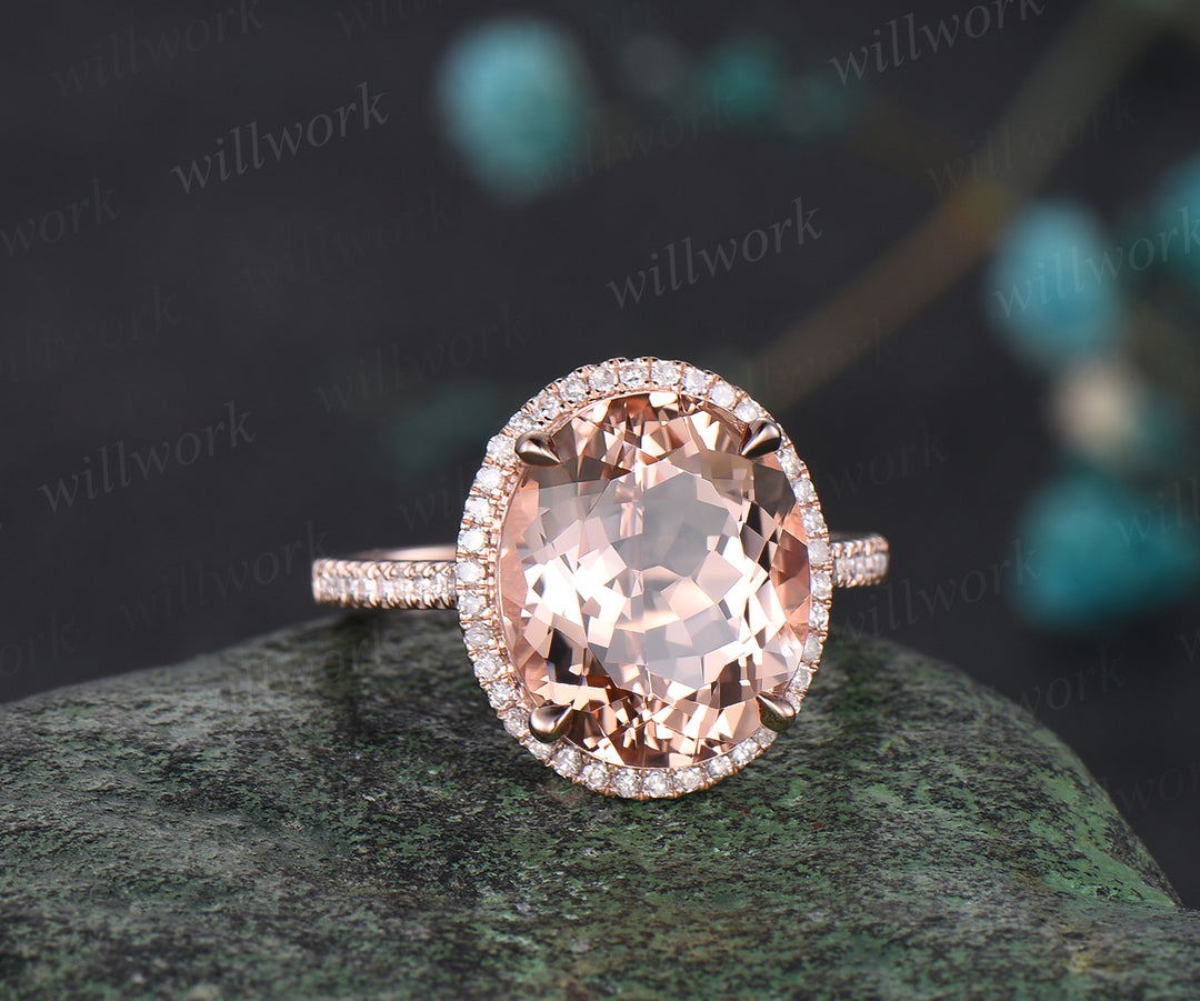 Unique 10x12mm Oval Cut Natural Morganite Engagement Ring Moissanite Diamond Halo Bridal Ring 14k Rose Gold Custom Anniversary Jewelry Gift