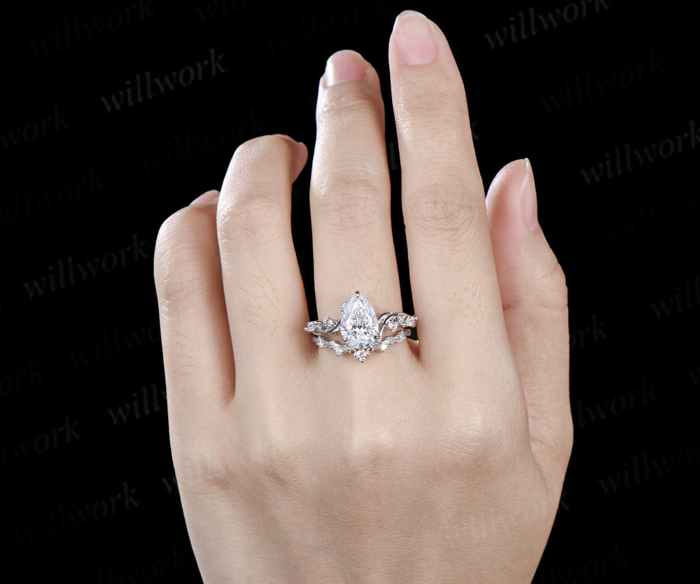 2 Carat Pear Lab Grown Diamond IGI Engagement Ring Nature Inspired Diamond Wedding Ring White Gold Diamond Bridal Ring for Her