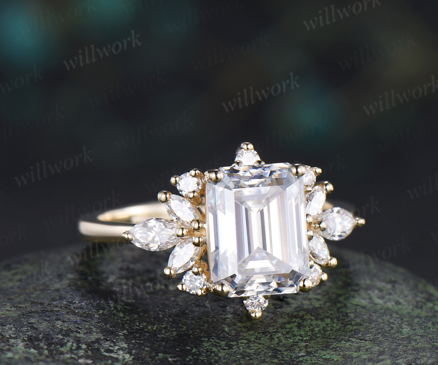 Emerald cut moissanite engagement ring unique cluster marquise pear moissanite promise wedding ring