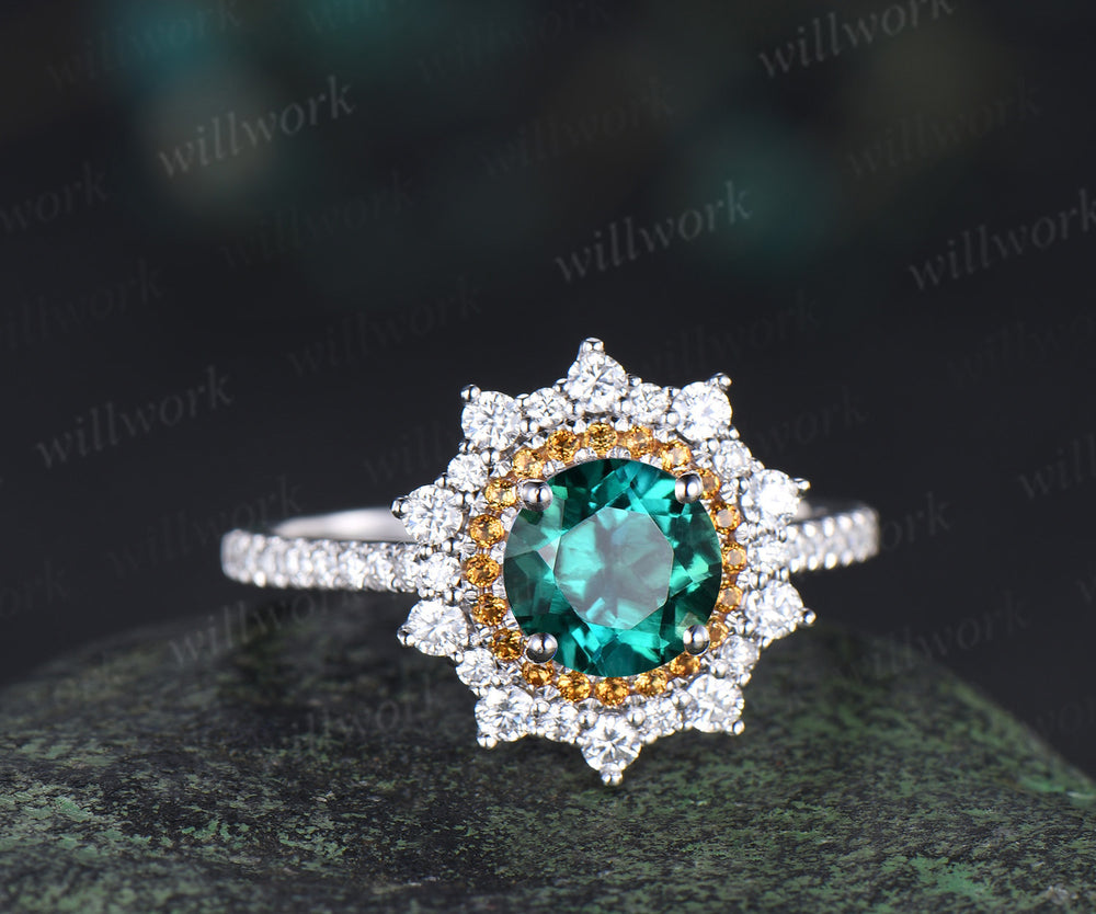 1ct round cut emerald ring double halo citrine snowdrift unique Engagement Ring 18k white gold wedding ring women