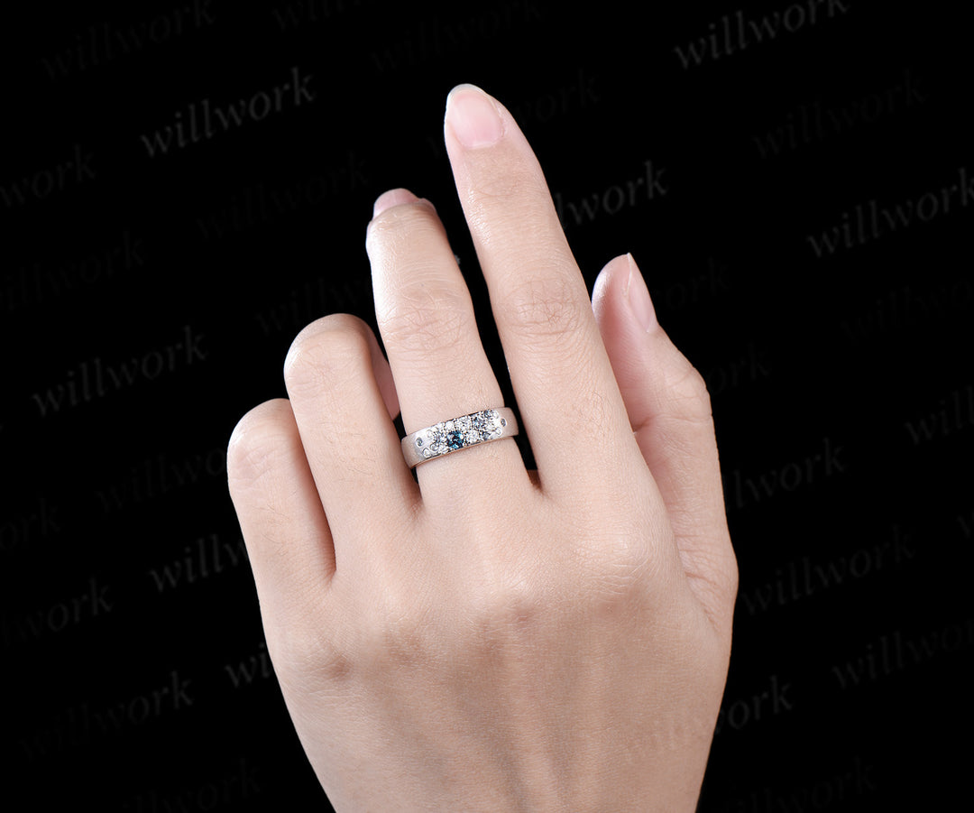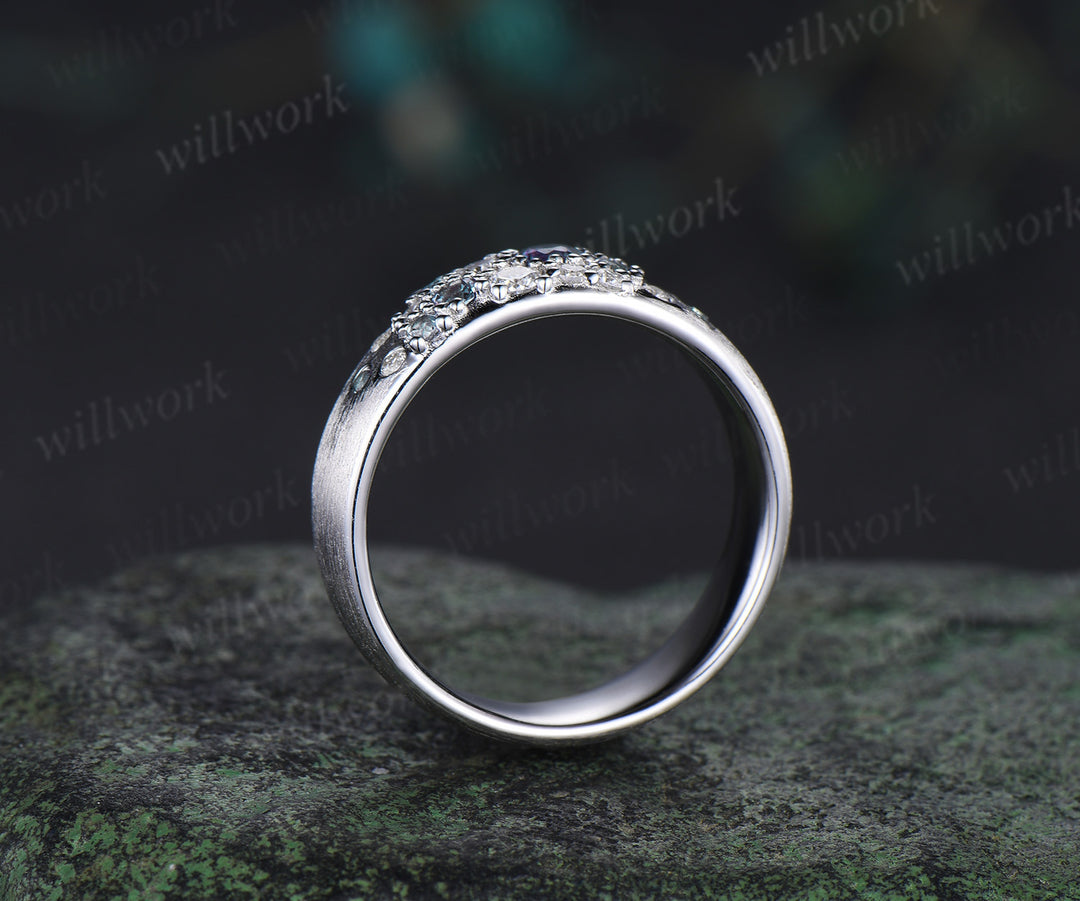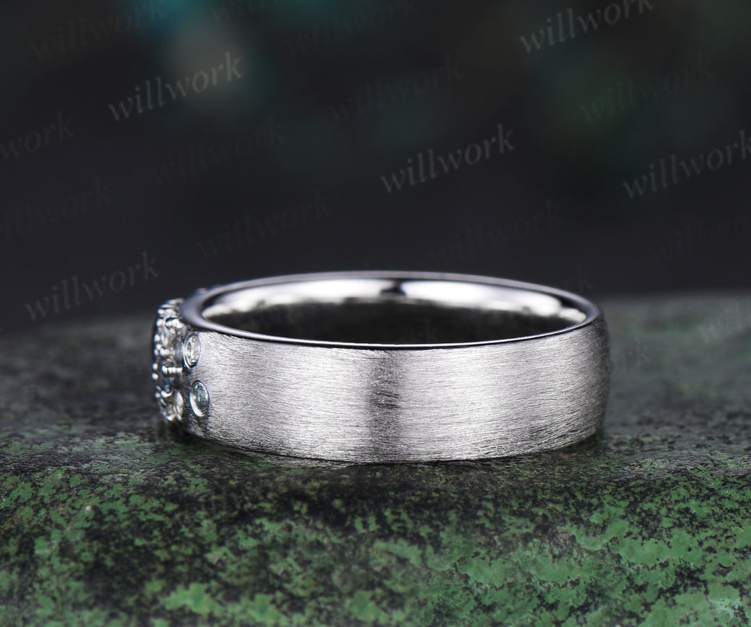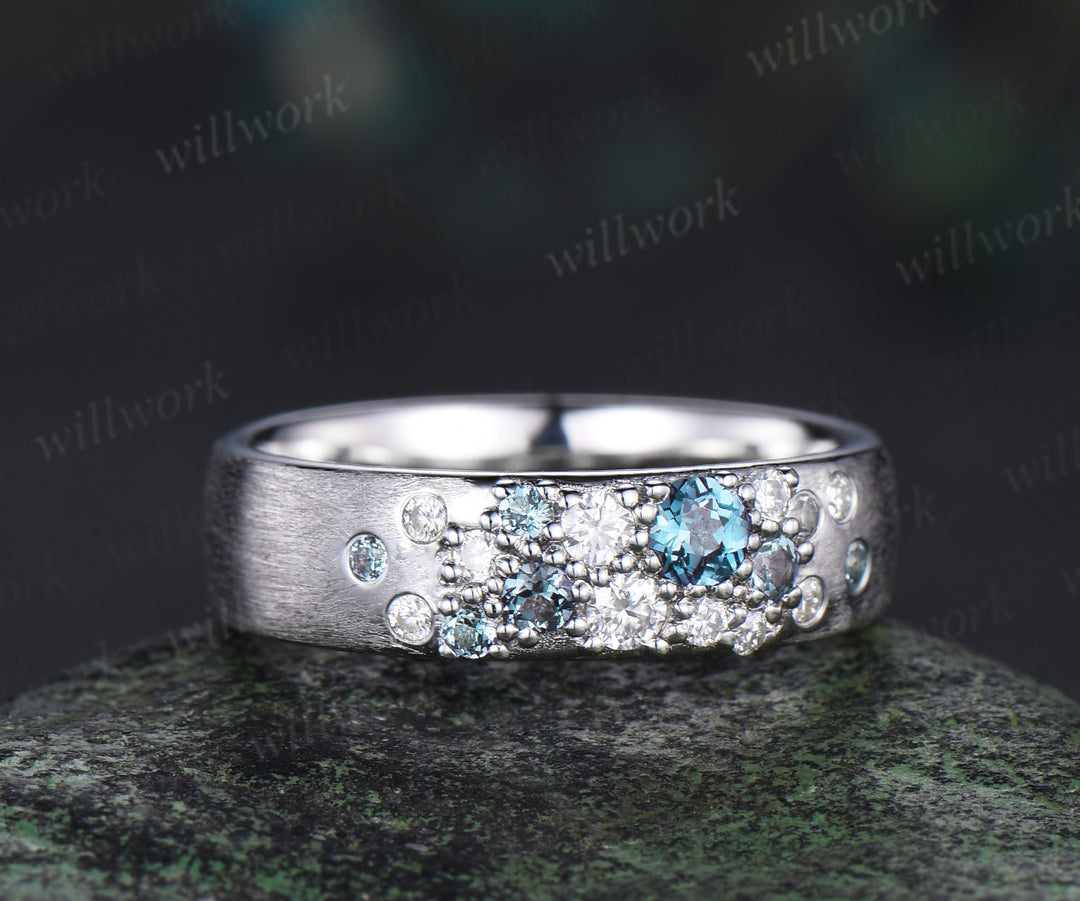 Alexandrite moissanite cluster men's wedding band unique brushed solid 14k white gold 6mm engagement ring for men anniversary gifts Alexandrite moissanite cluster men's wedding band unique brushed solid 14k white gold 6mm engagement ring for men anniversary gifts $655.00