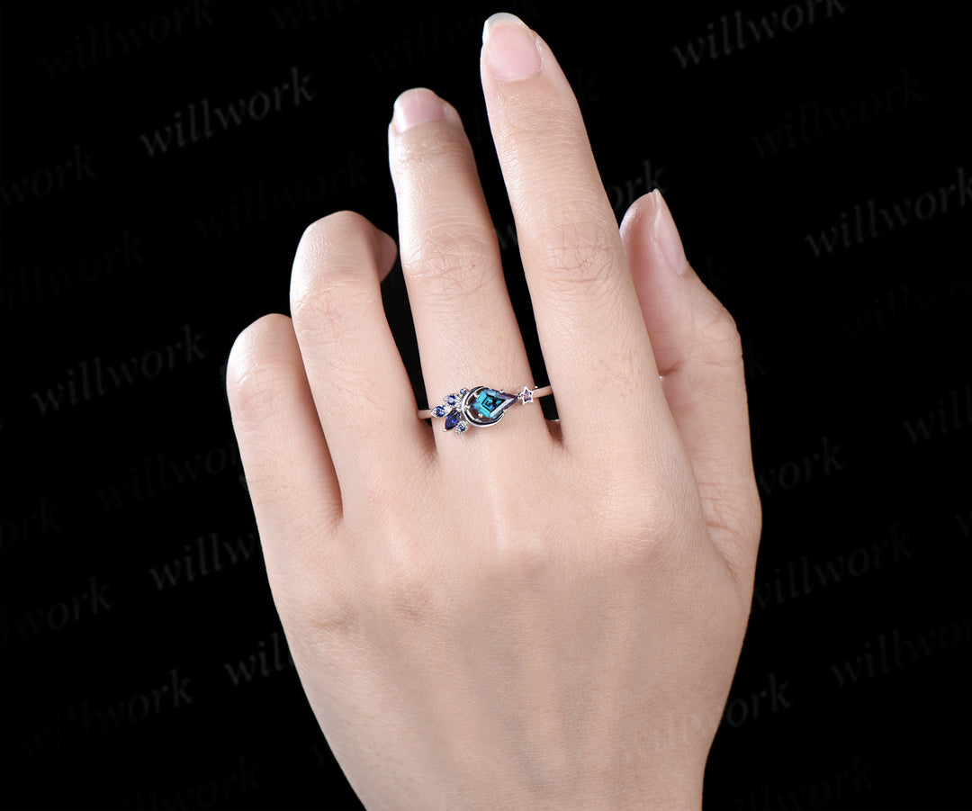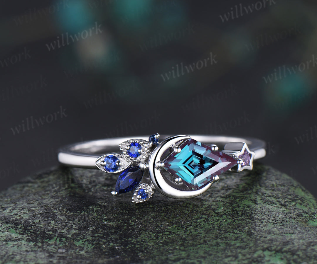 Kite Cut Color-Change Alexandrite Engagement Ring Moon Wedding Ring Cluster Blue Sapphire Amethyst Ring Unique Personalized Promise Rings Kite Cut Color-Change Alexandrite Engagement Ring Moon Wedding Ring Cluster Blue Sapphire Amethyst Ring Unique Personalized Promise Rings $407.00