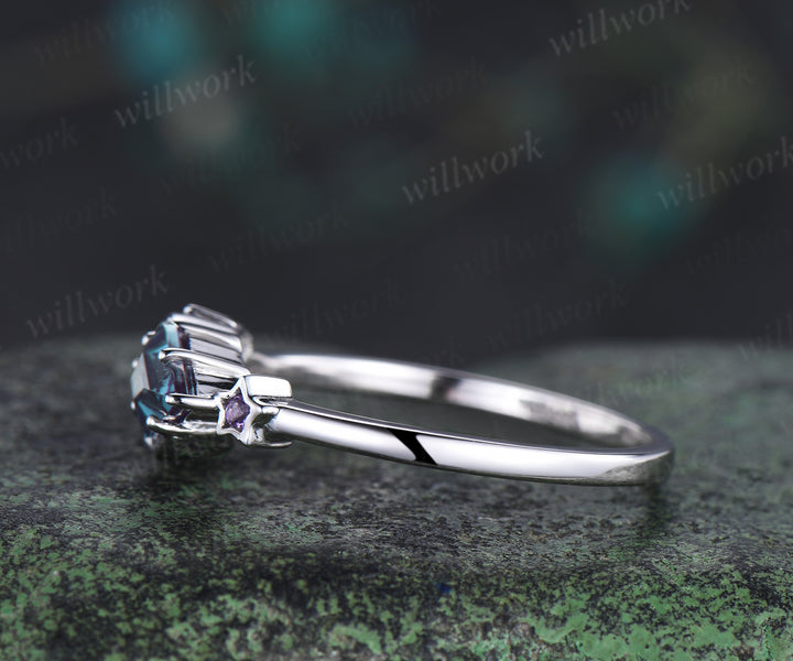 Kite Cut Color-Change Alexandrite Engagement Ring Moon Wedding Ring Cluster Blue Sapphire Amethyst Ring Unique Personalized Promise Rings