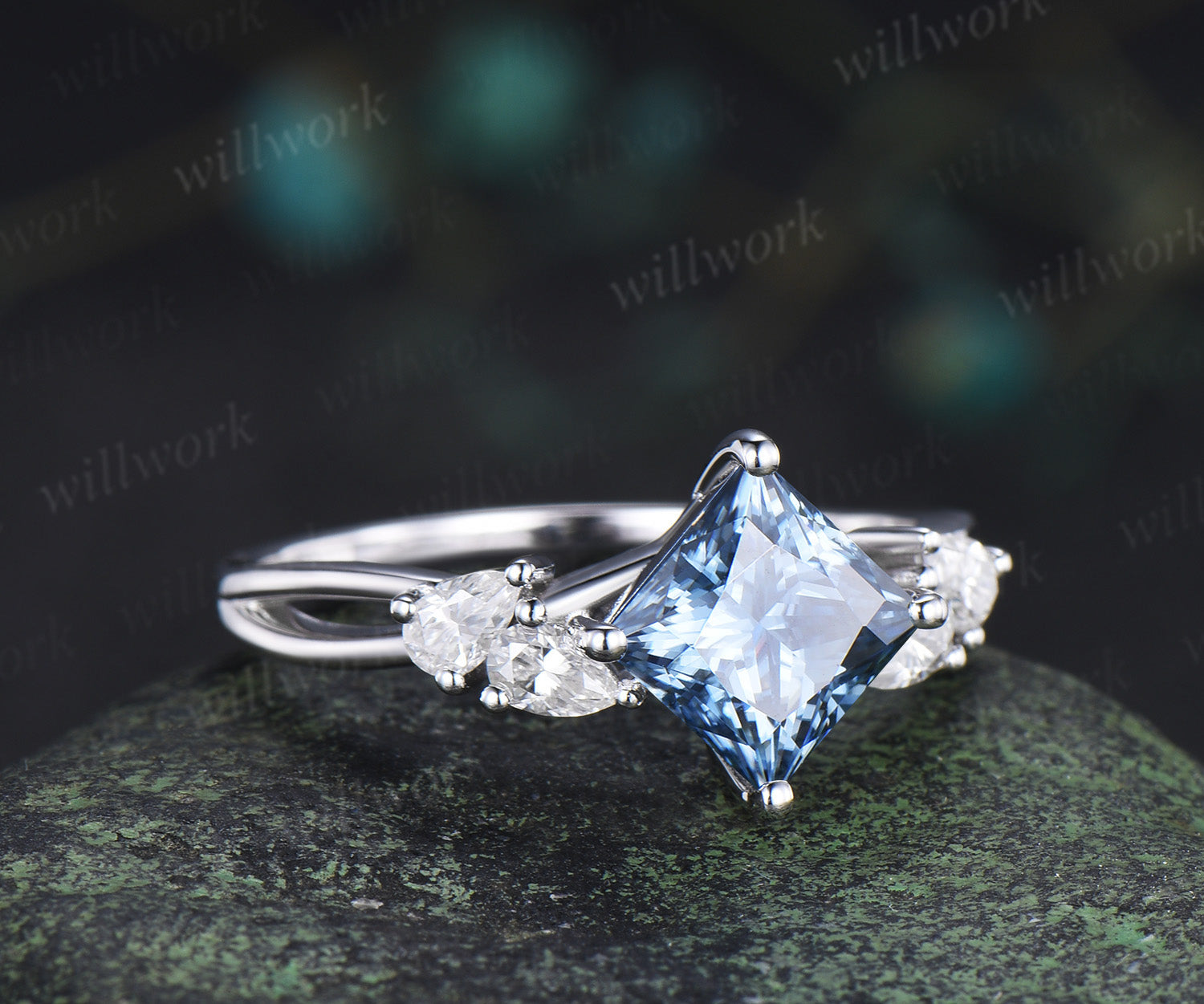 ***Striking geometry meets elegant sparkle in this princess cut blue moissanite engagement ring. A vivid square center stone is framed by a pear moissanite cluster, while the split shank design adds flowing lines and dimension. A modern yet romantic moissanite ring, perfect as a meaningful gift for women.***- Metal: Solid gold(10K/14K/18K white/yellow/rose gold),925 sterling silver,platinum available