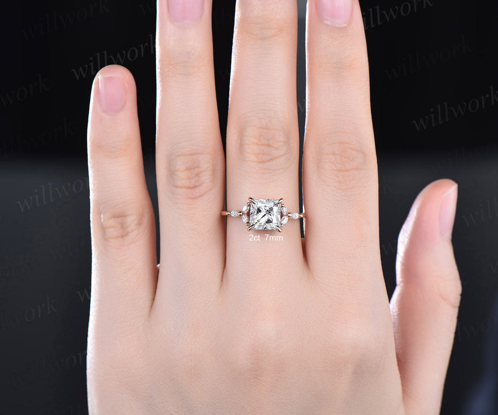 4ct moissanite ring unique princess cut moissanite engagement ring 14k rose gold flower art deco diamond ring women wedding promise ring