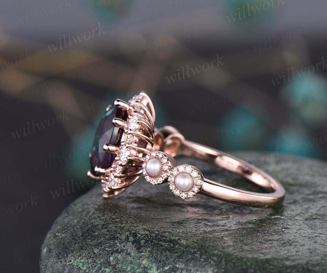- Main Stone: 7x9mm oval cut Lab treated Alexandrite