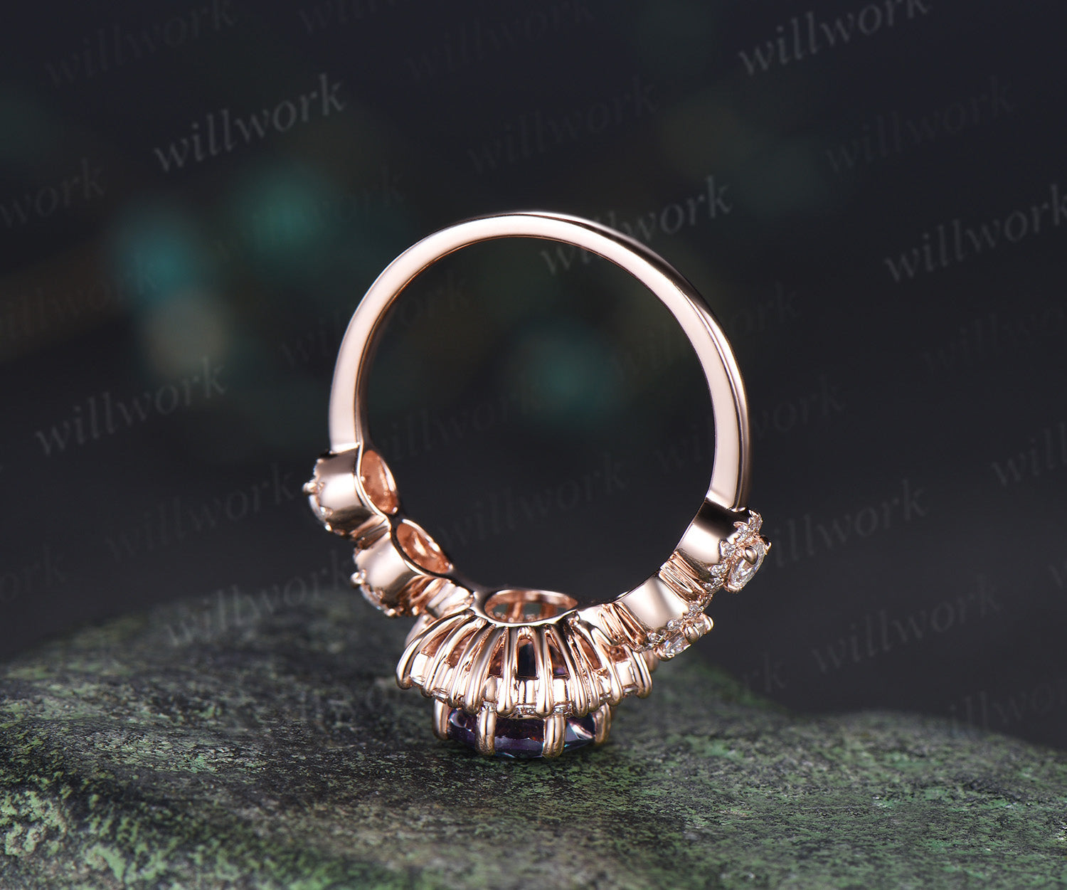 Retro oval cut alexandrite engagement ring art deco multi halo moissanite wedding ring unique bridal ring