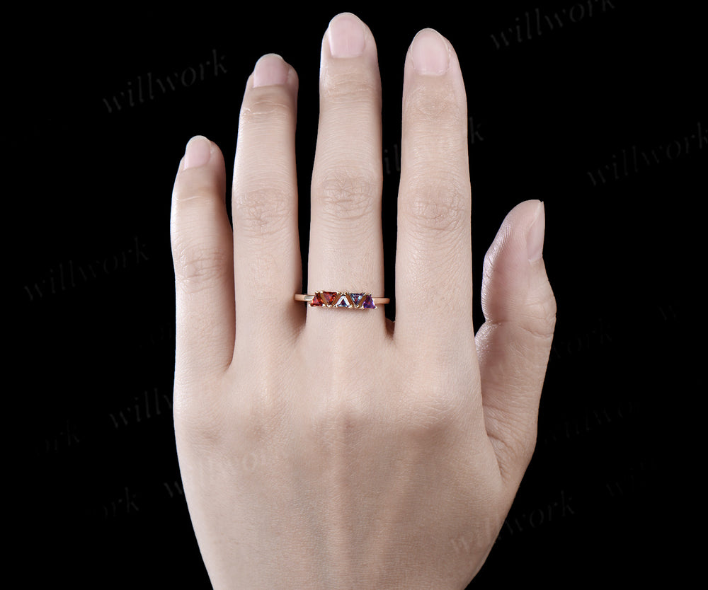 Trilliant cut garnet alexandrite amethyst ring solid 14k yellow gold five stone birthday gift Multi-Stone Rings anniversary ring women gift Trilliant cut garnet alexandrite amethyst ring solid 14k yellow gold five stone birthday gift Multi-Stone Rings anniversary ring women gift $319.00