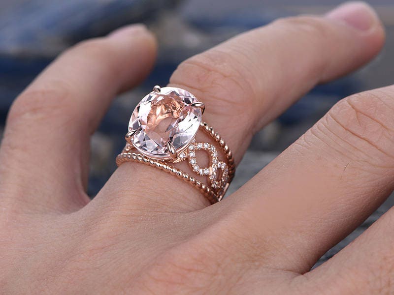 10x12mm Big Oval Morganite engagement ring- Solid 14k Rose gold  anniversary ring-Solitaire Stacking band- art deco floral promise ring 10x12mm Big Oval Morganite engagement ring- Solid 14k Rose gold anniversary ring-Solitaire Stacking band- art deco floral promise ring $4,185.00