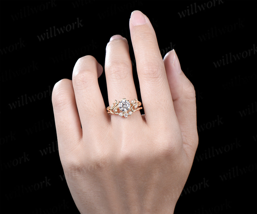 1ct round cut IGI lab grown diamond engagement ring set unique moon leaves vines ring solid yellow gold bridal set 1ct round cut IGI lab grown diamond engagement ring set unique moon leaves vines ring solid yellow gold bridal set $387.00