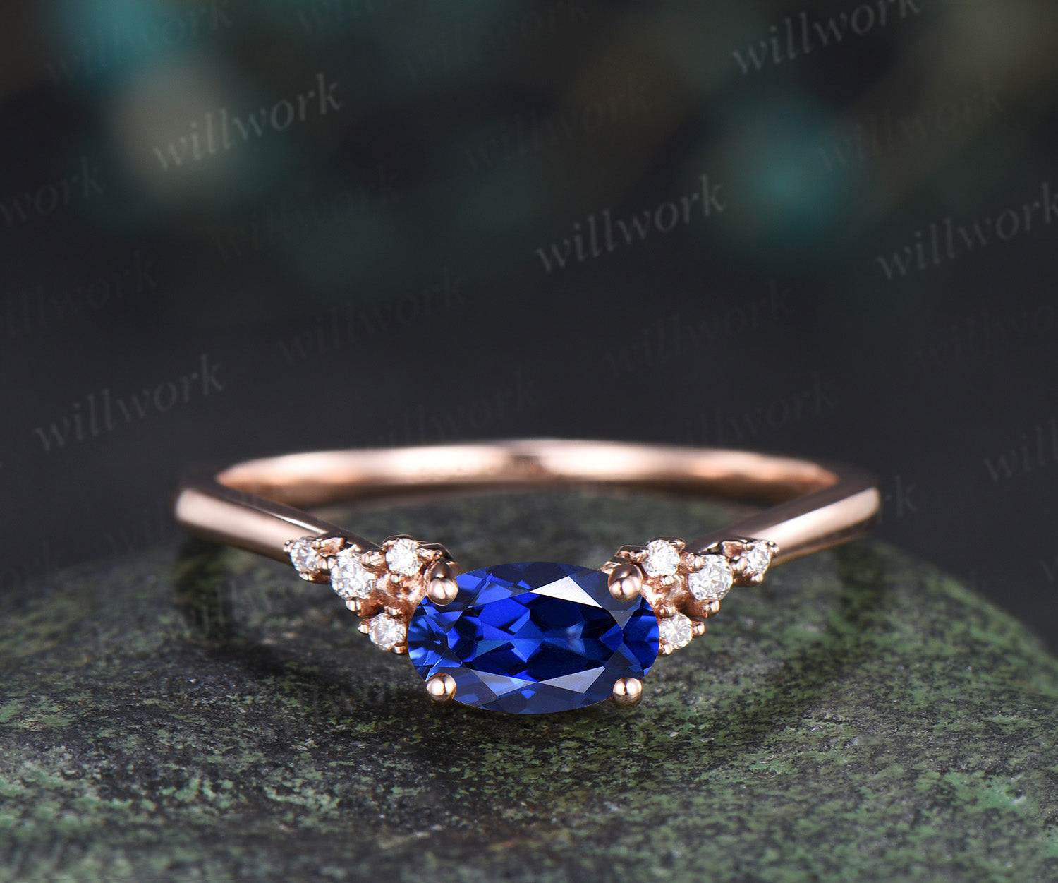 - Main Stone: 4x7mm oval cut lab blue sapphire