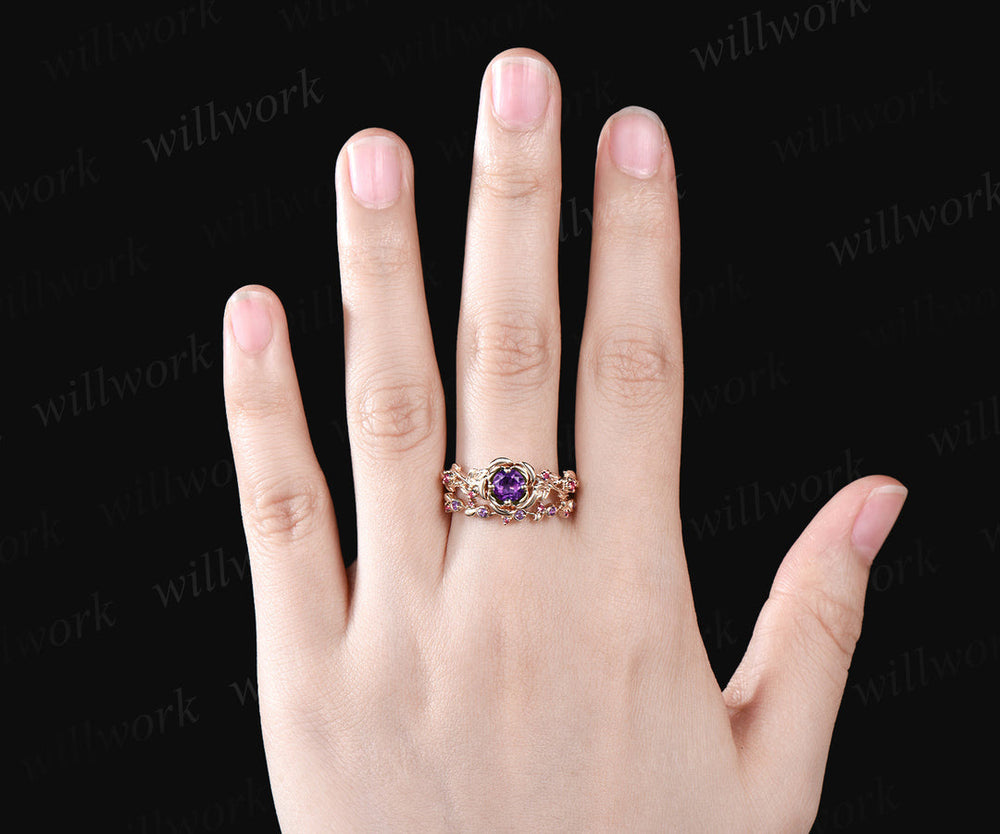 Unique Rose Flower Vine Twig Branch Nature Inspired Ring Amethyst Engagement Ring Ruby Floral Leaf Wedding Band 14k Yellow Gold 2pcs Bridal Ring Set Unique Rose Flower Vine Twig Branch Nature Inspired Ring Amethyst Engagement Ring Ruby Floral Leaf Wedding Band 14k Yellow Gold 2pcs Bridal Ring Set $717.00