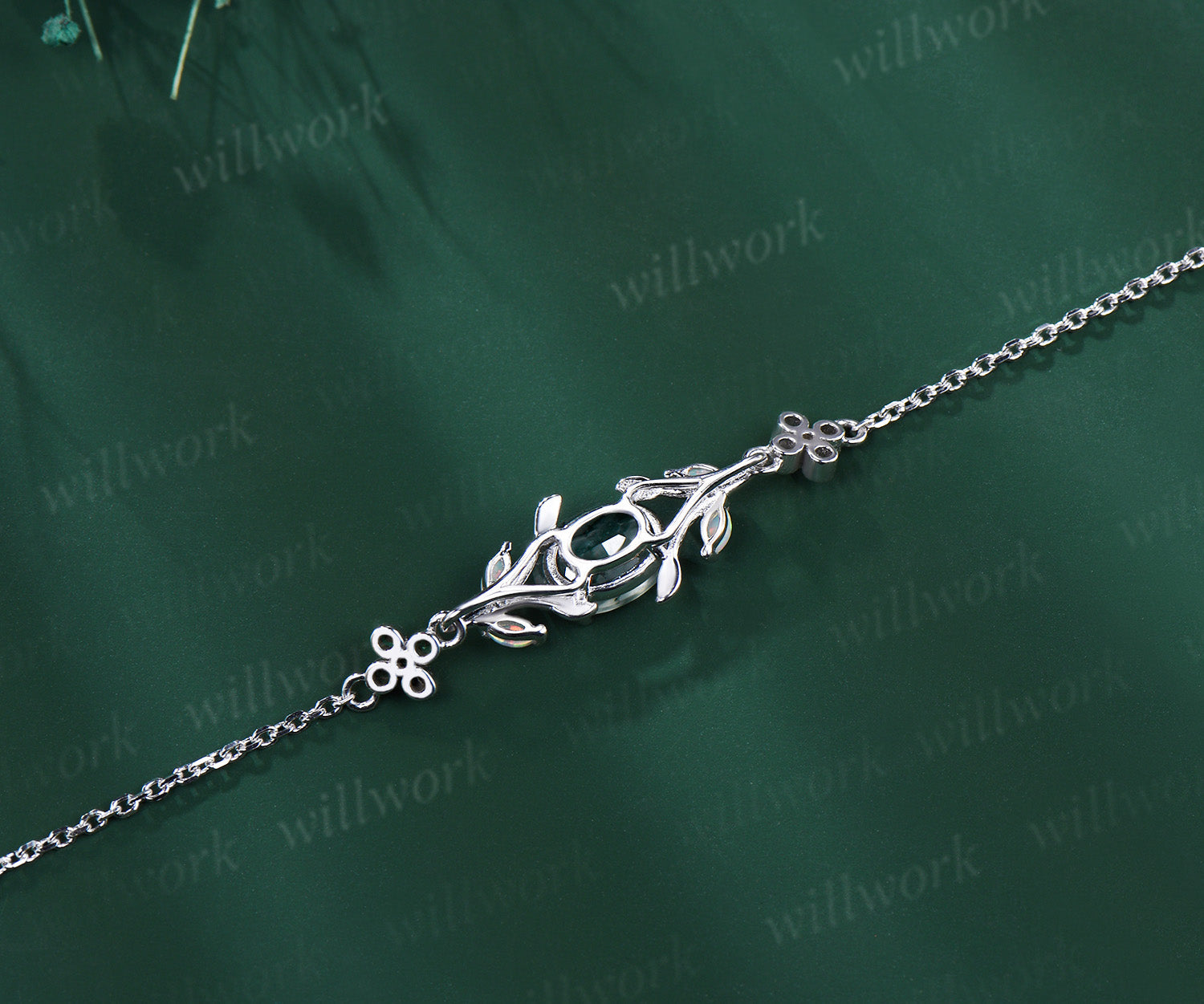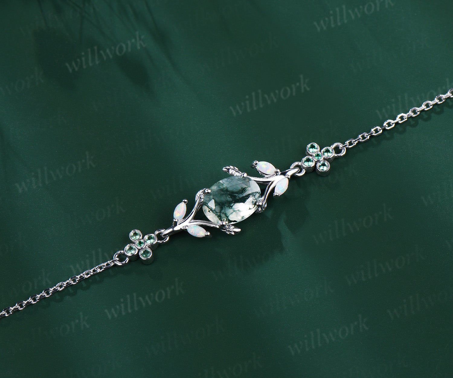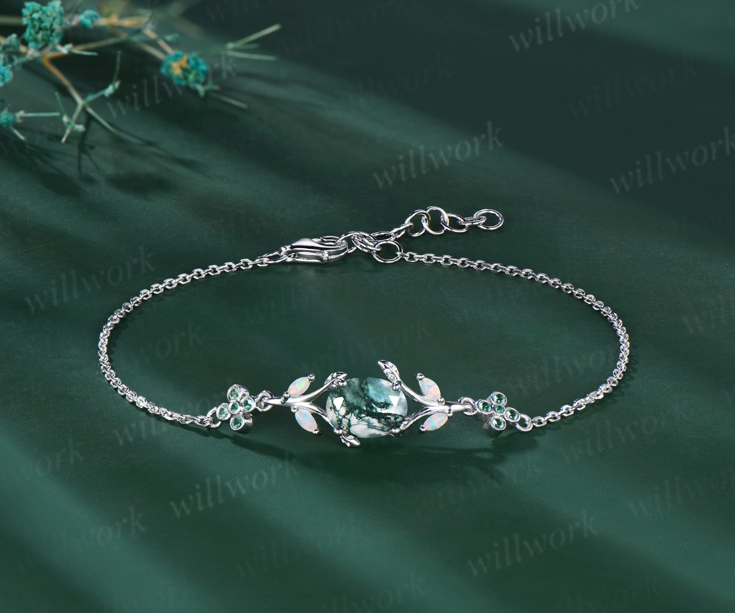 Oval cut moss agate marquise opal leaf bracelet emeralds clover adjustable bracelet nature inspired jewelry for women