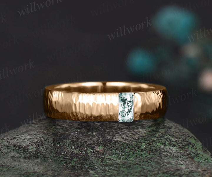14k rose gold wedding band green moss agate men's ring gift for him anniversary gift