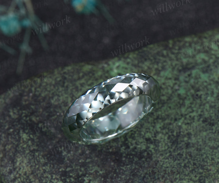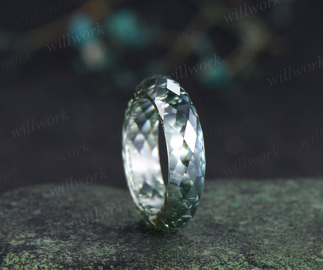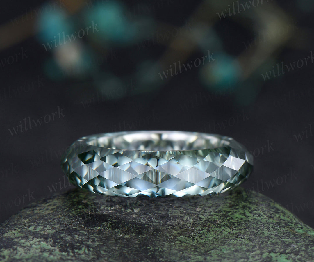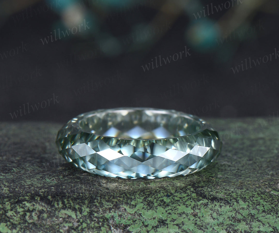 Briolette cut green moissanite wedding band mens full eternity unique bridal engagement ring women for him husband
