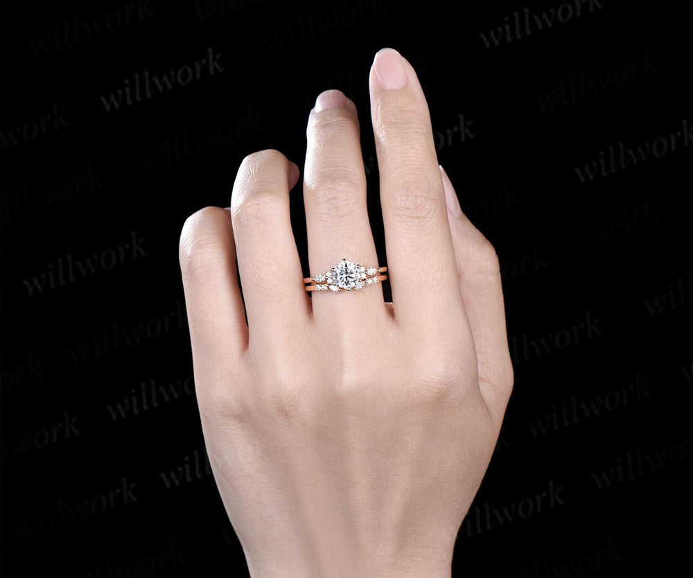 1ct round cut moissanite IGI lab grown diamond engagement ring set women solid 14k yellow gold 6 prong promise ring open gap wedding band