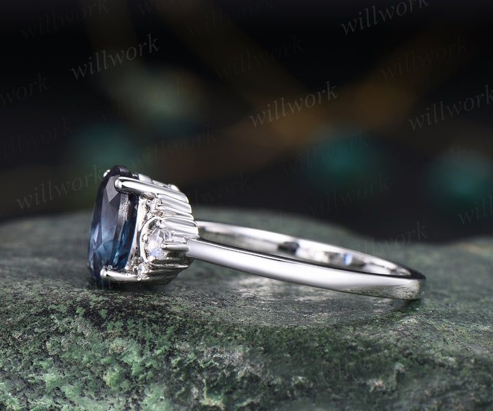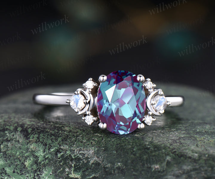 1.5ct oval cut Alexandrite engagement ring unique deco moon ring crescent nature inspired ring June birthstone promise anniversary ring for women