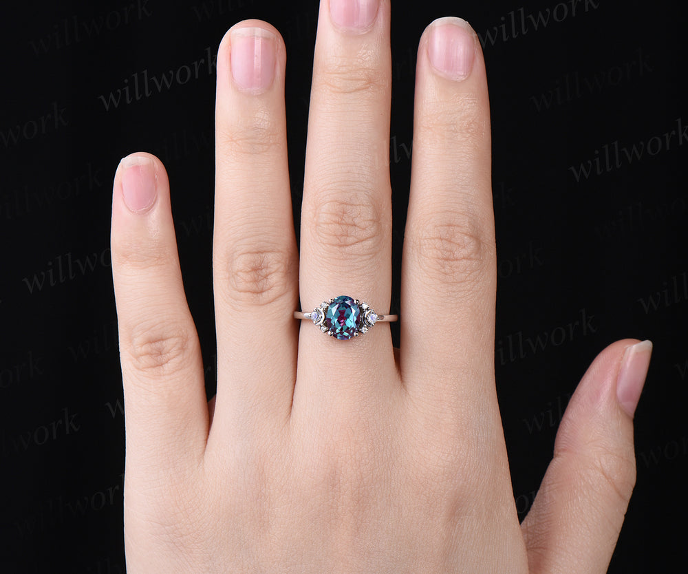 - Main Stone: 6x8mm oval cut lab Alexandrite