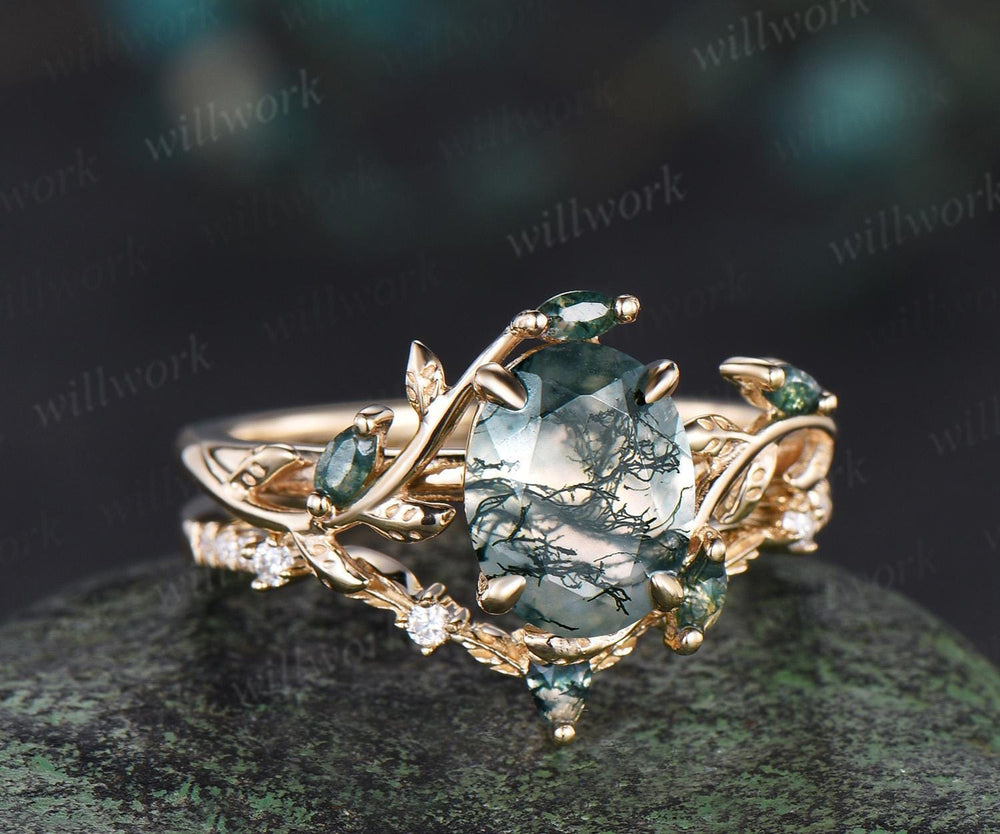 2ct oval cut moss agate engagement ring set 14k yellow gold 7x9mm antique bridal set twisted leaf promise ring set 2ct oval cut moss agate engagement ring set 14k yellow gold 7x9mm antique bridal set twisted leaf promise ring set $396.00