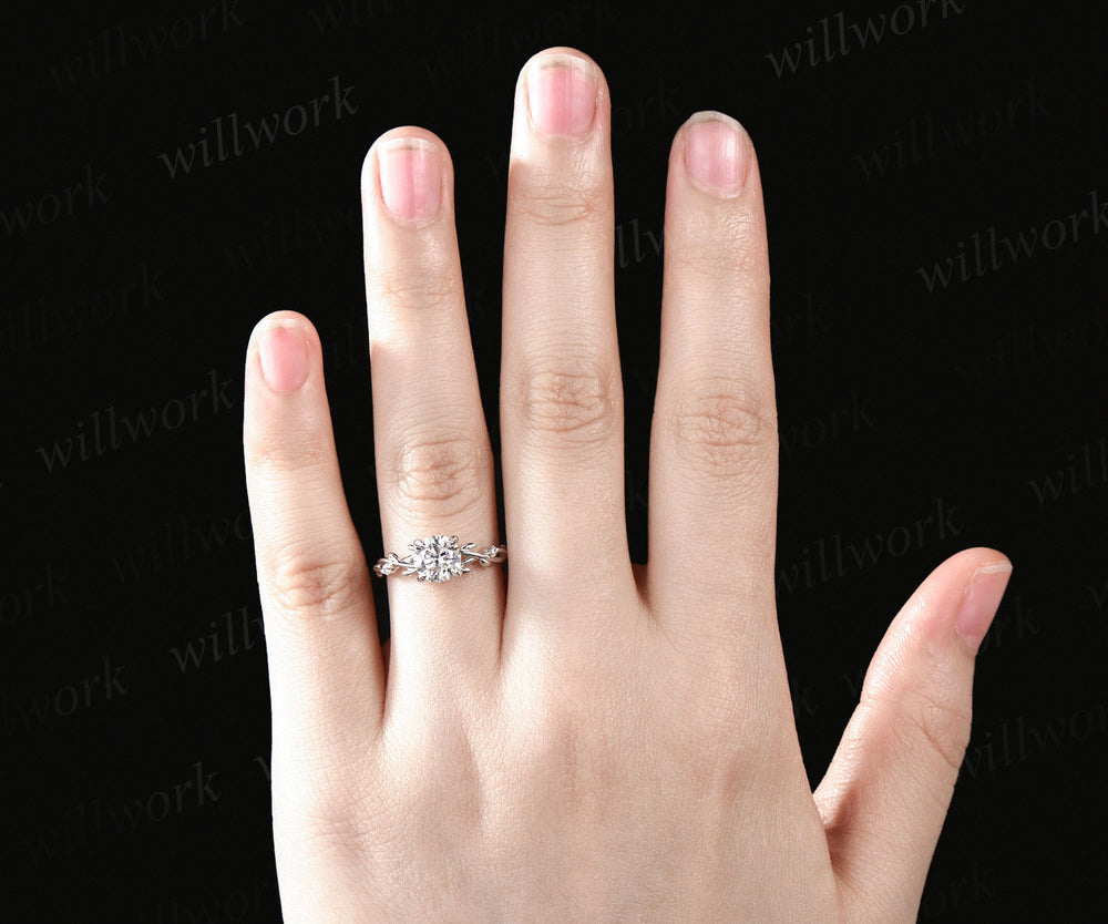 1ct Round brillant cut moissanite engagement ring nature inspired leaf twig moissnaite diamond ring infinity wedding band bridal gifts 1ct Round brillant cut moissanite engagement ring nature inspired leaf twig moissnaite diamond ring infinity wedding band bridal gifts $427.00