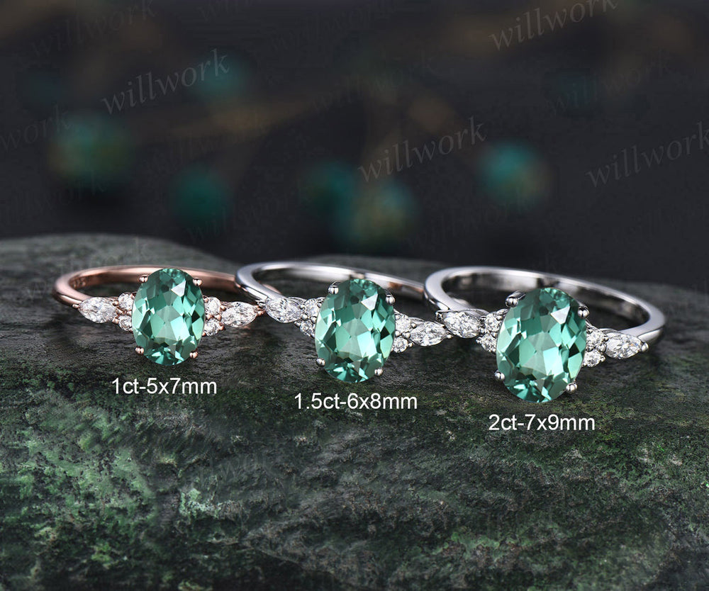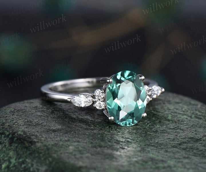 Teal sapphire engagement ring oval green sapphire engagement ring unique marquise white gold engagement ring diamond wedding ring women