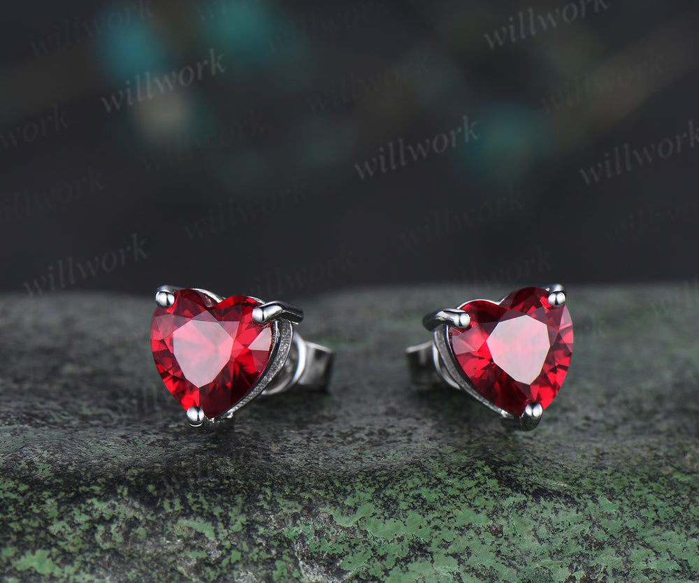 Heart Cut Ruby Stud Earrings Unique July Birthstone Solitaire Earrings 14k white Gold Red Gemstone Pierced Earrings Women Heart Cut Ruby Stud Earrings Unique July Birthstone Solitaire Earrings 14k white Gold Red Gemstone Pierced Earrings Women $386.00