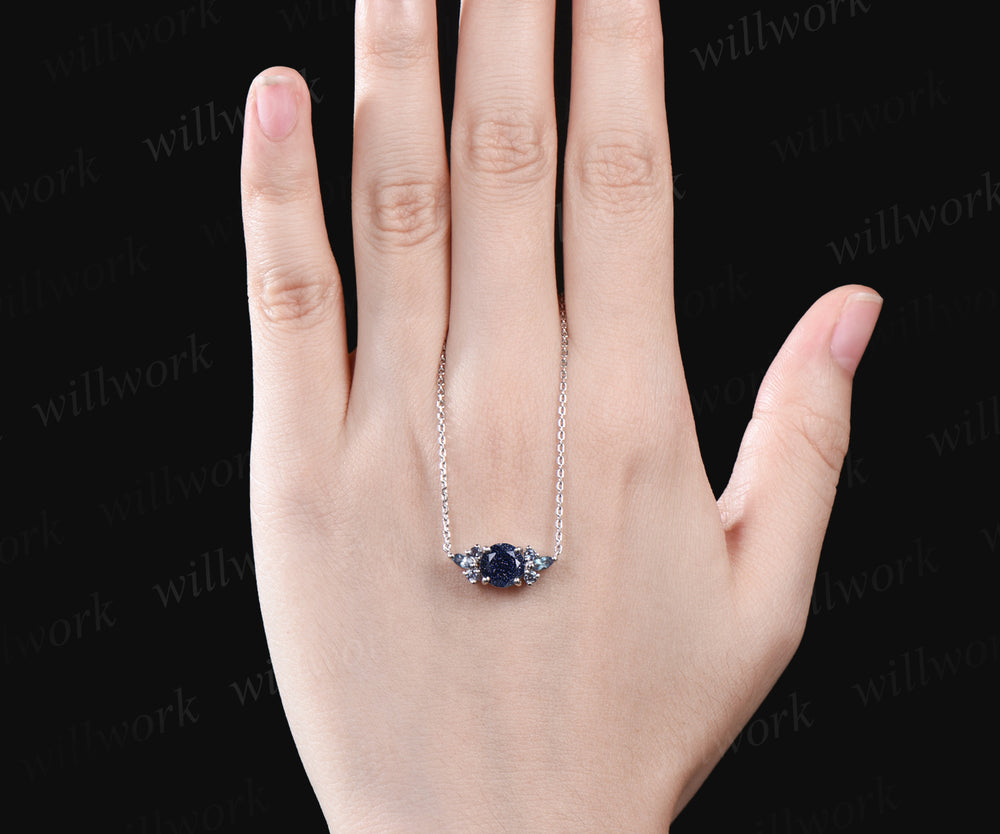 Delicate Galaxy Round Cut Blue Sandstone Necklace Minimalist June Birthstone Alexandrite Pendant Cluster Seven Stone Necklace Healing Jewelry