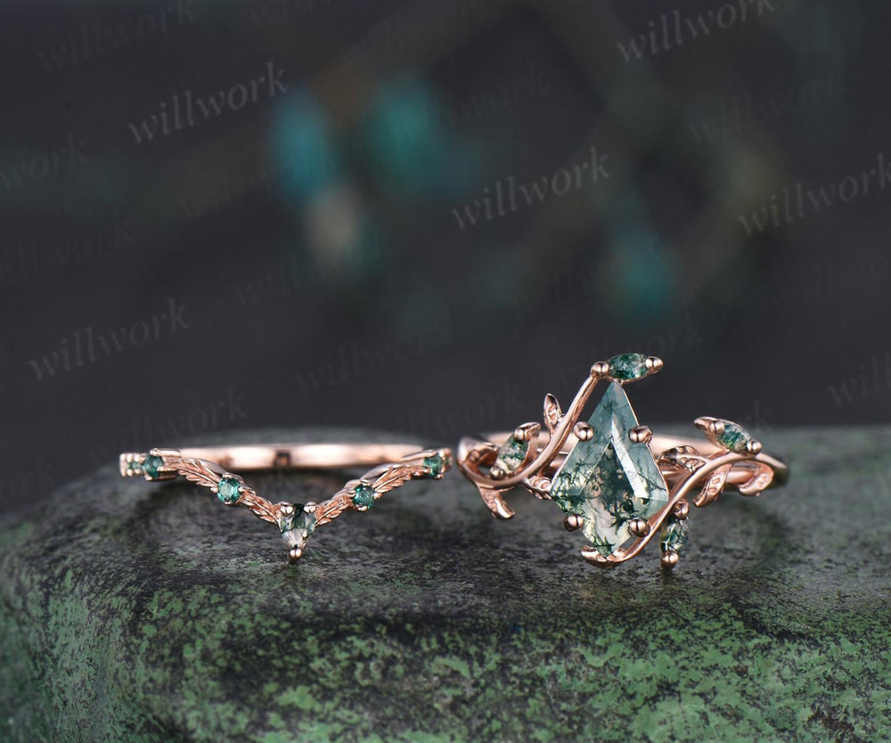7x10mm kite shaped natural moss agate ring rose gold leaf nature inspired engagement wedding ring set emerald bridal set women 7x10mm kite shaped natural moss agate ring rose gold leaf nature inspired engagement wedding ring set emerald bridal set women $399.00