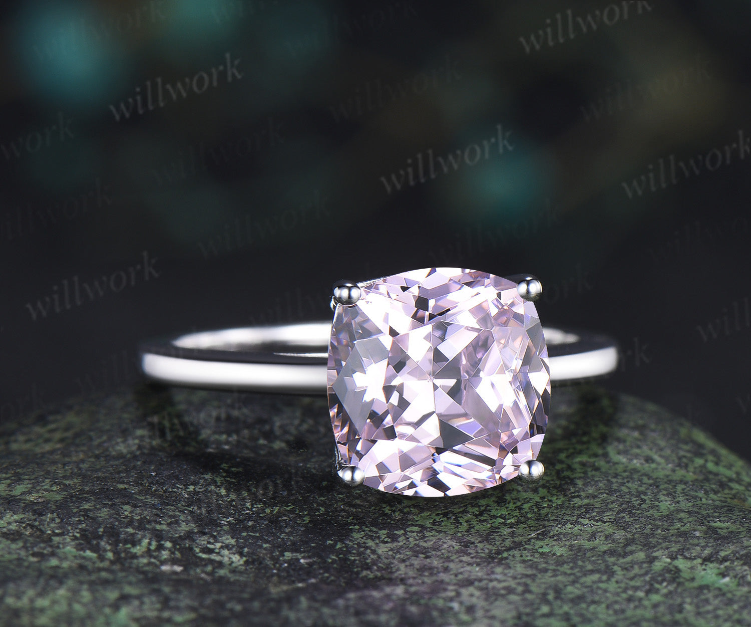 ***This elegant solitaire engagement ring features a radiant 9mm cushion cut pink cubic zirconia that sparkles with soft romantic color. Set in a timeless design, it offers classic beauty with a modern touch.***- Metal: Solid gold(10K/14K/18K white/yellow/rose gold),925 sterling silver,platinum available