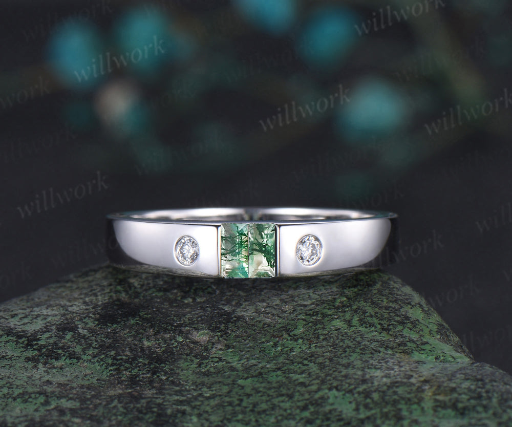 Baguette cut moss agate wedding band men four stone diamond mens wedding ring band unique engagement anniversary gift Baguette cut moss agate wedding band men four stone diamond mens wedding ring band unique engagement anniversary gift $386.00