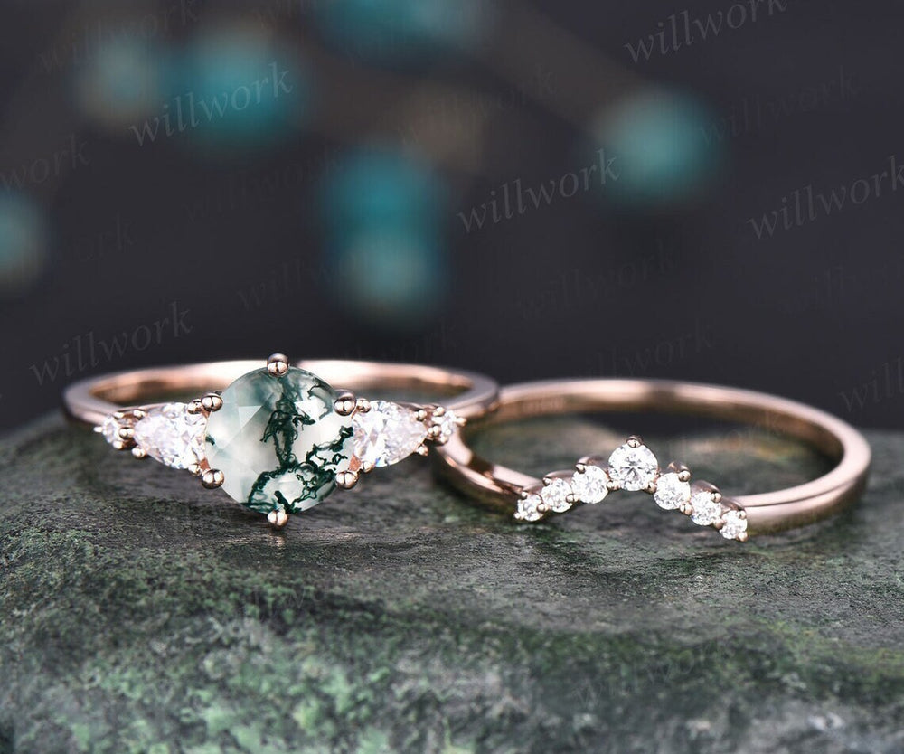 Only 1pc solid moissanite wedding band solid 14k rose gold matching band curved stacking ring jewelry gift Only 1pc solid moissanite wedding band solid 14k rose gold matching band curved stacking ring jewelry gift $309.00