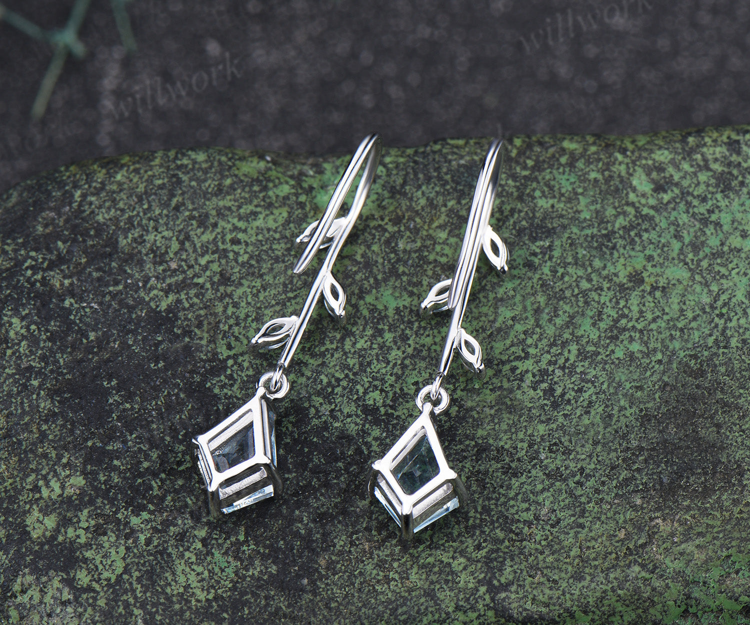 Kite cut natural aquamarine drop earrings leaf marquise aquarmaine dangle earrings for women