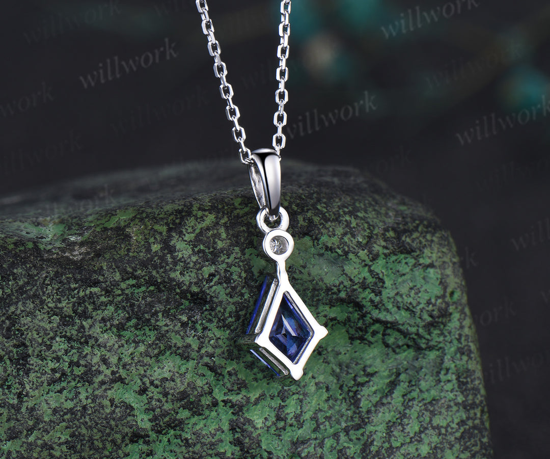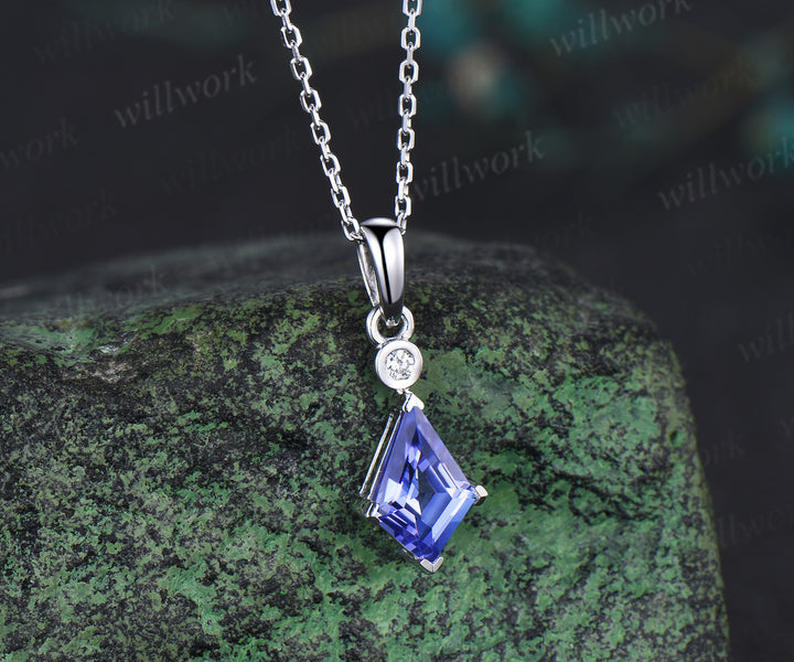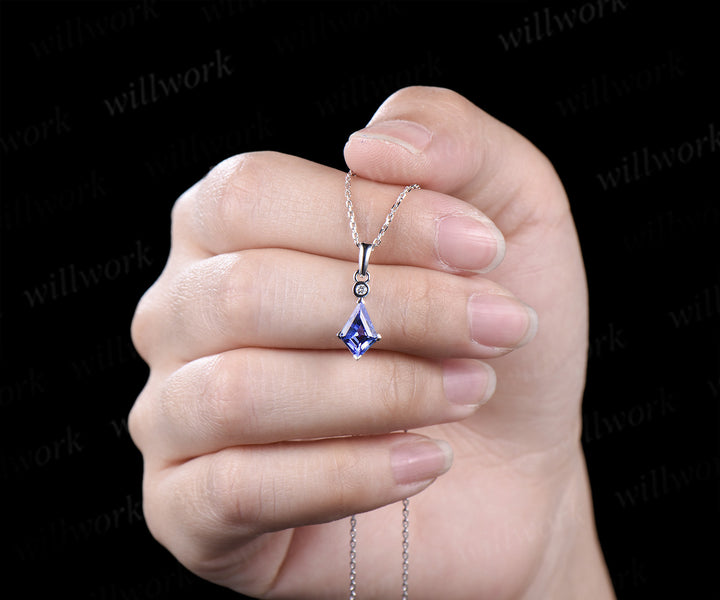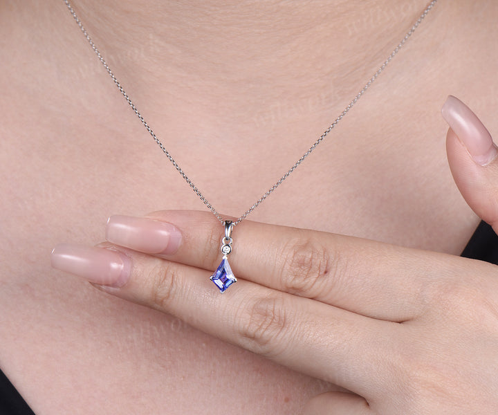 Minimalist kite cut tanzanite necklace solid sterling silver/white gold art deco diamond pendant necklace anniversary birthday gifts