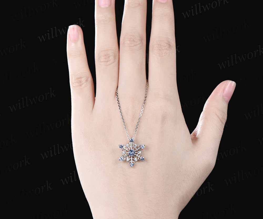 Christmas Snowflake Necklace Christmas Atmosphere Jewelry with a snow blue topaz with perfect 925 sterling silver Christmas Eve Jewelry Gifts for her