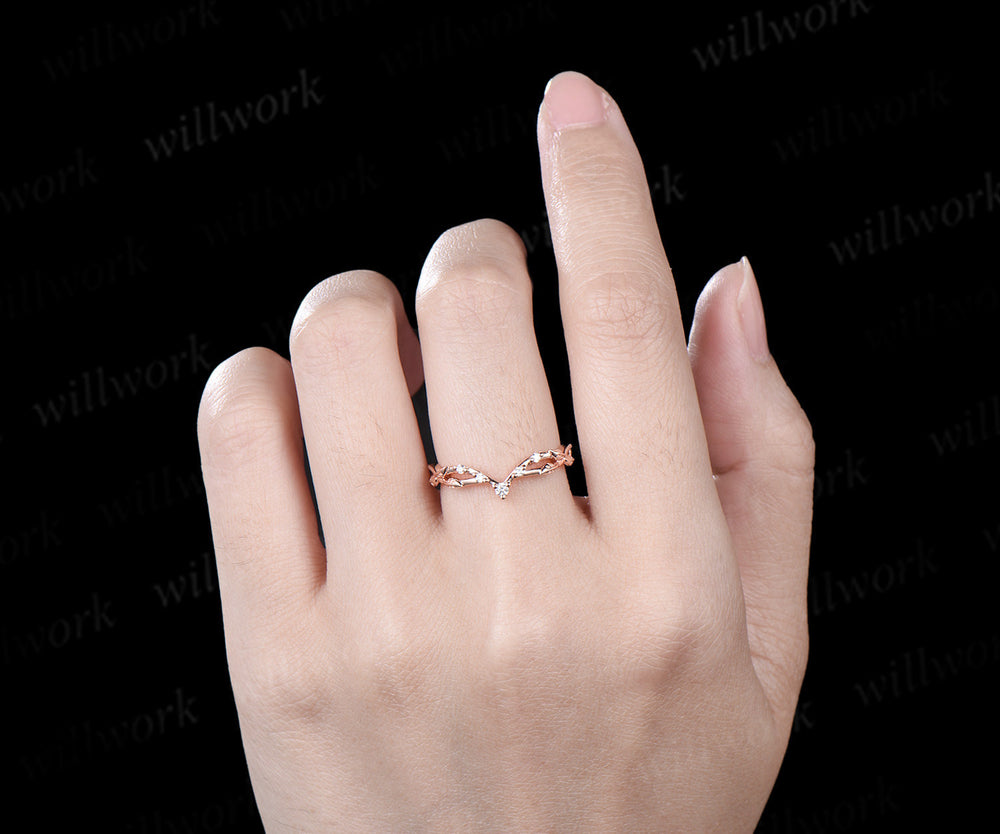 Curved moissanite wedding band leaf split shank stackable ring diamond wedding band for women gifts for her