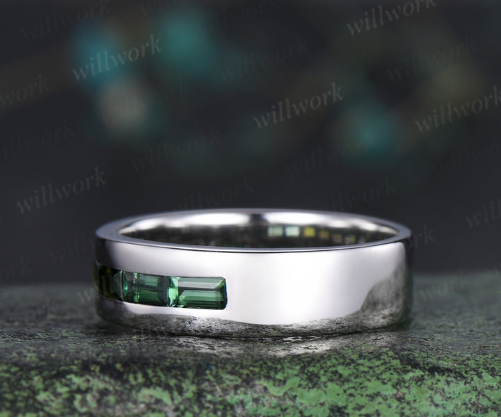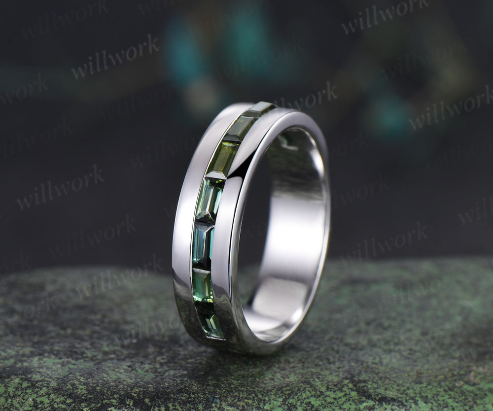 Baguette cut green tourmaline wedding band men half eternity mens engagement ring minimalist wedding anniversary gift
