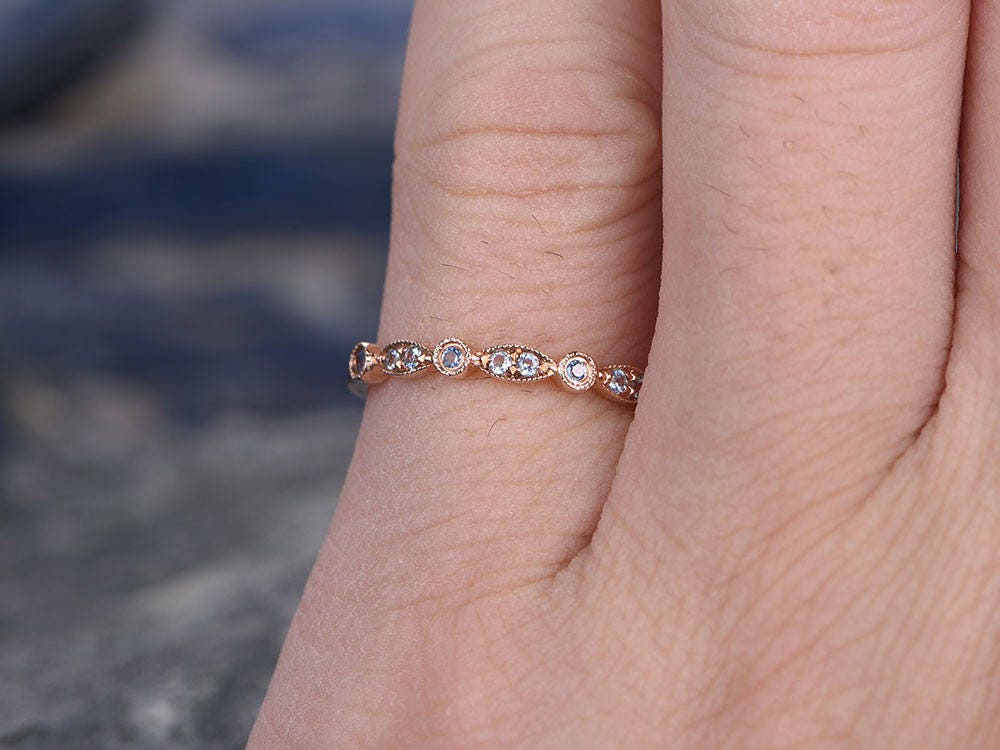 blue topaz wedding ring rose gold marquise diamond ring half eternity art deco matching stacking band tiny stones promise ring gift for her